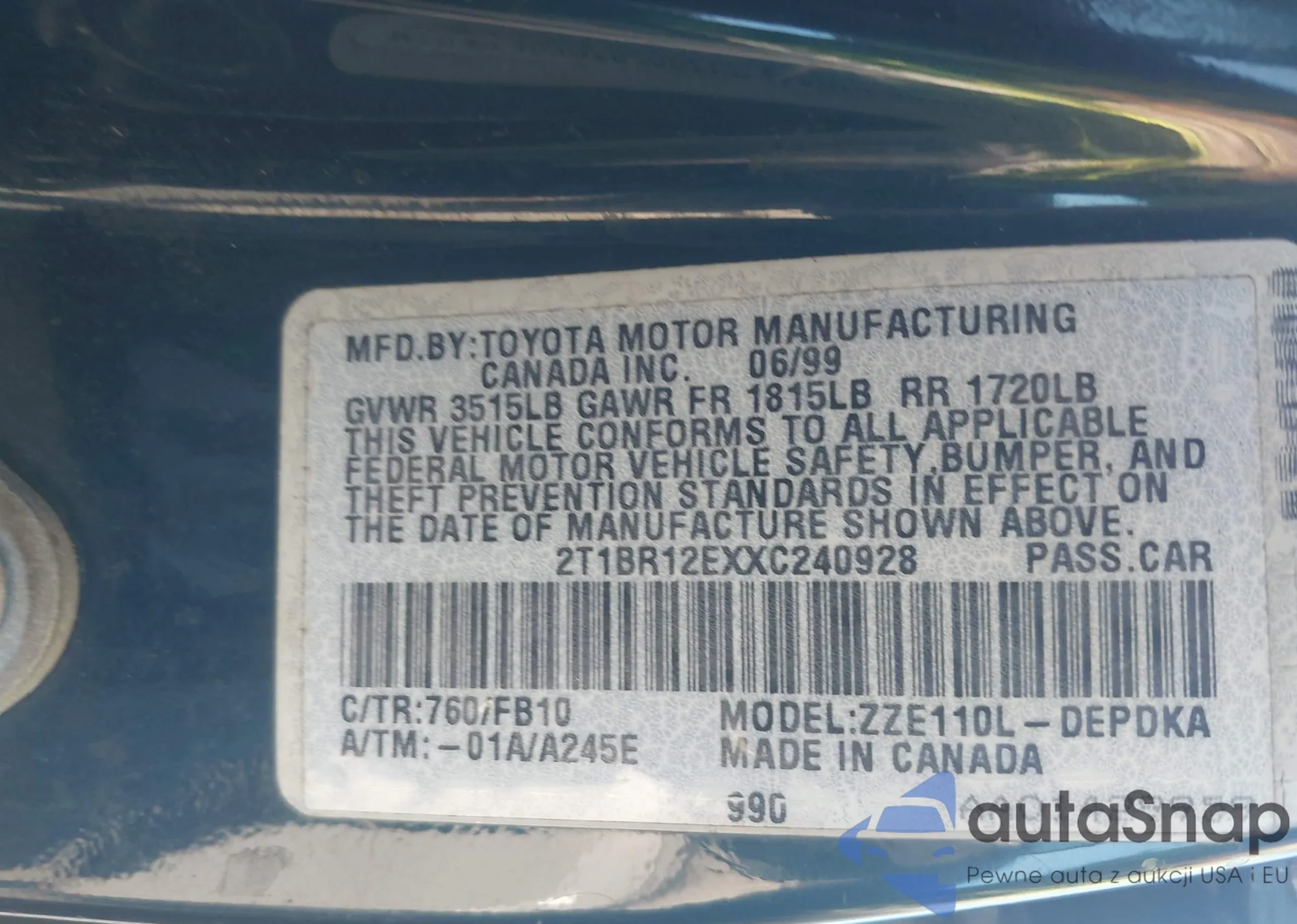 • VIN: 2T1BR12EXXC240928