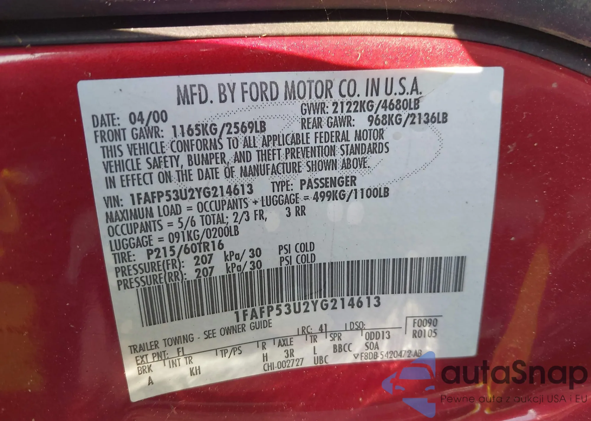 1FAFP53U2YG214613 IAAI