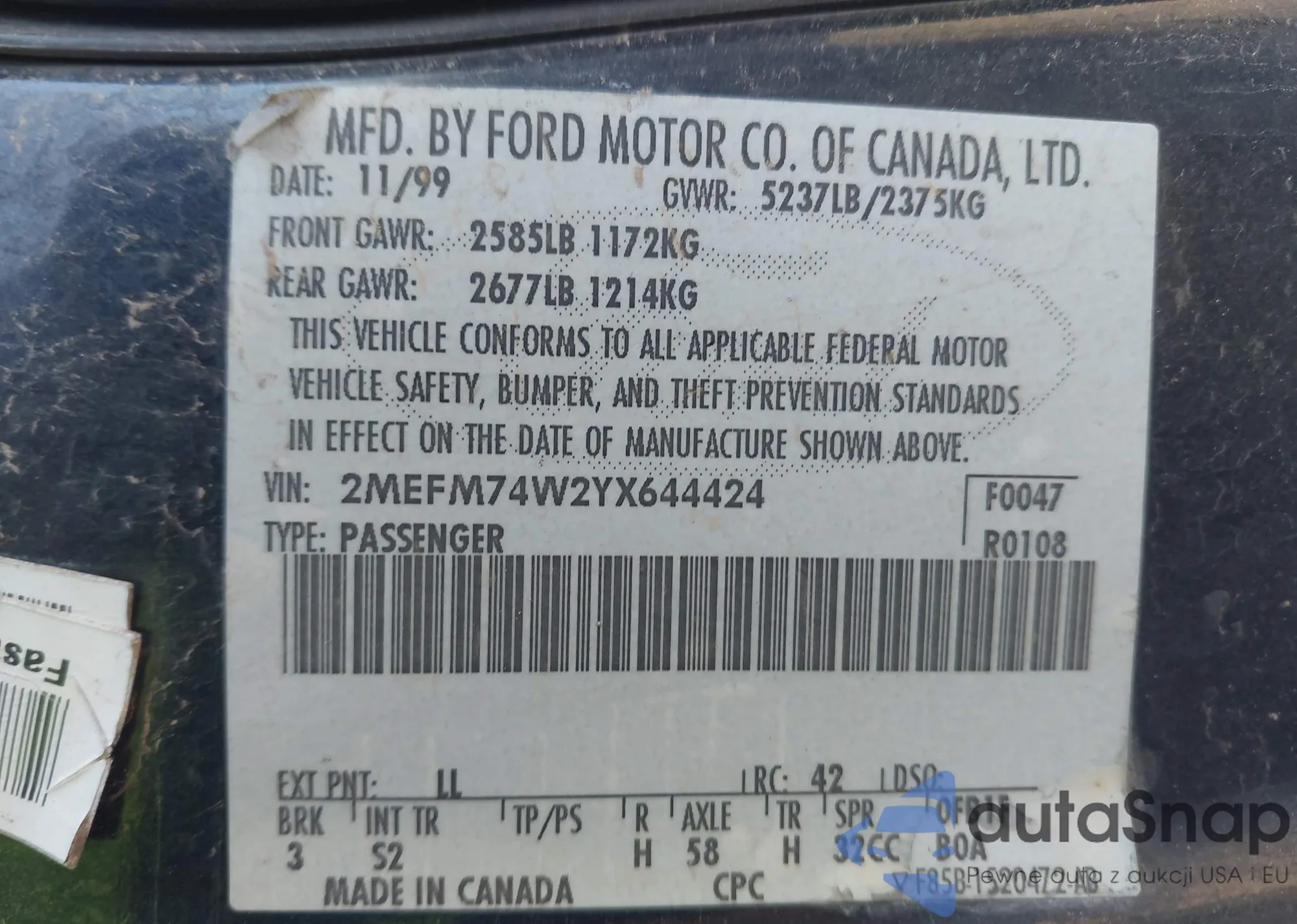Samochód Mercury Grand Marquis 2000 (VIN 2MEFM74W2YX644424) był już licytowany 1 razy i/lub sprzedaje go niezweryfikowany sprzedawca. Zalecamy raport Carfax i potwierdzenie możliwości rejestracji pojazdu przed zakupem.