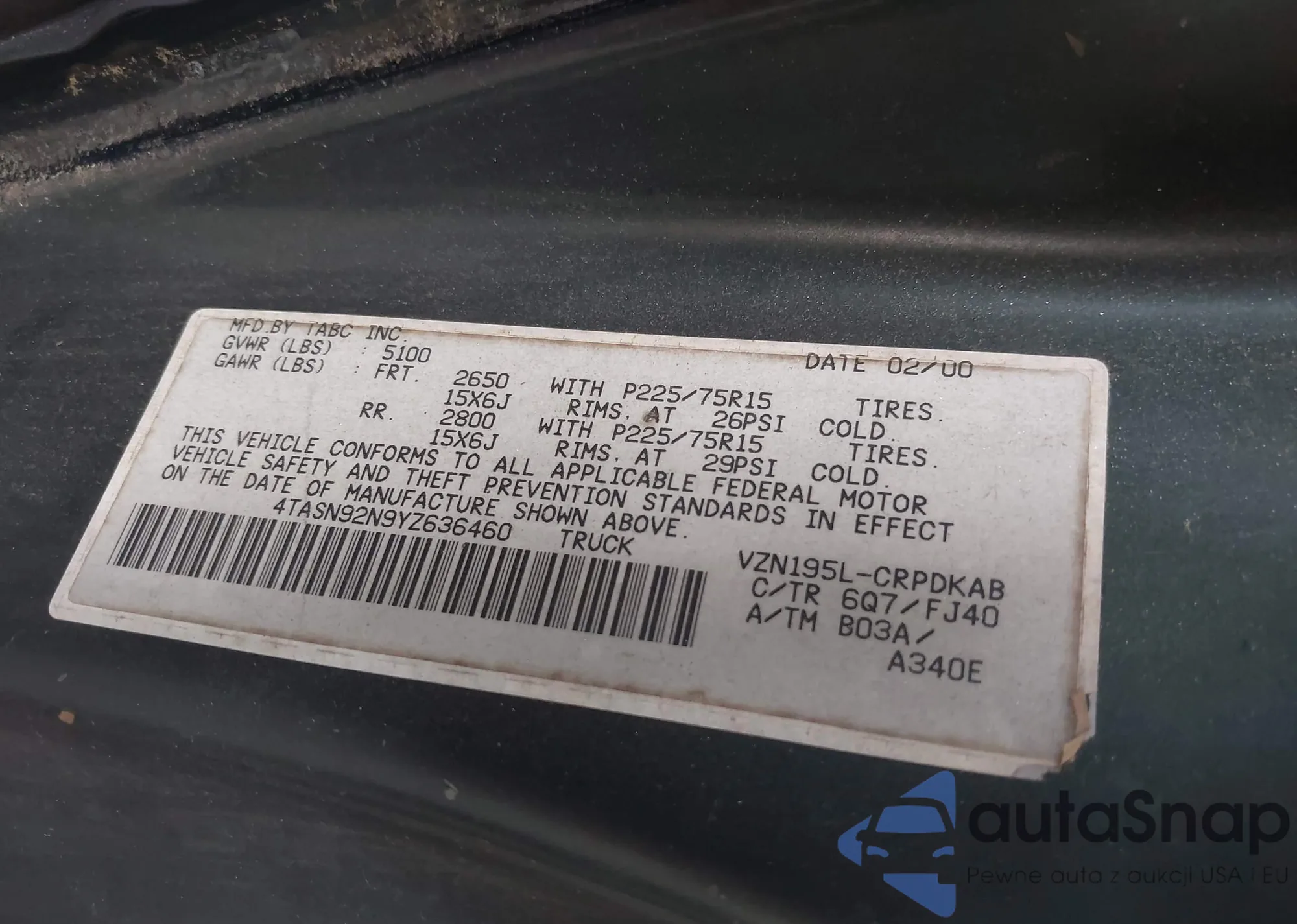 VIN: 4TASN92N9YZ636460