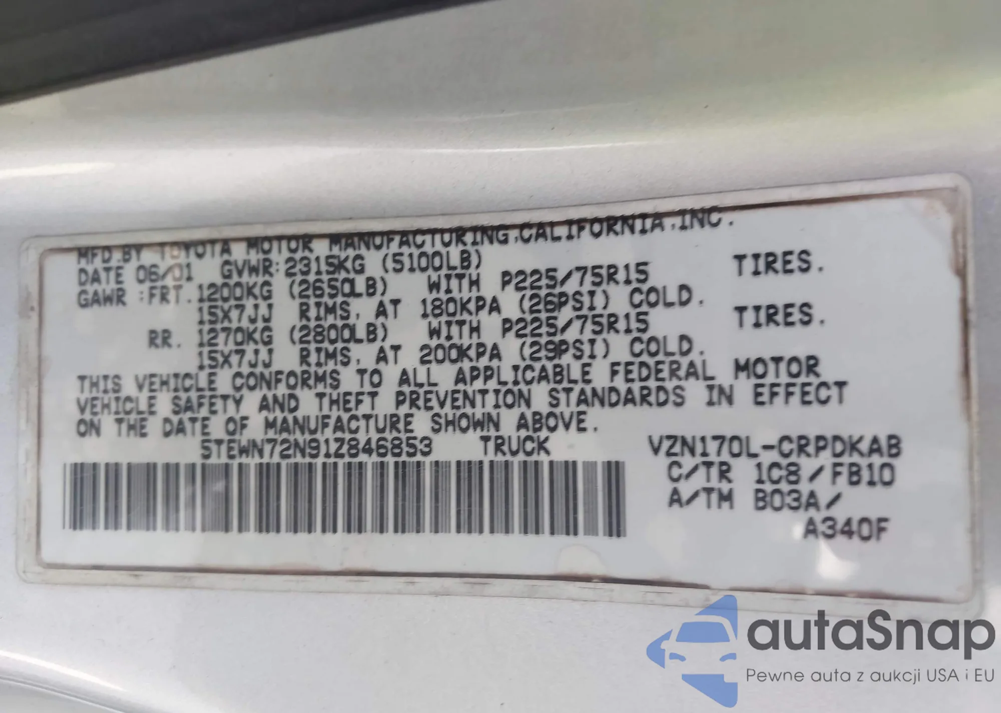 • VIN: 5TEWN72N91Z846853