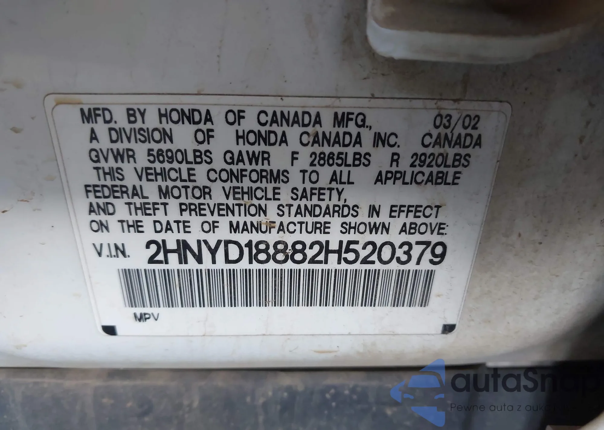 VIN: 2HNYD18882H520379