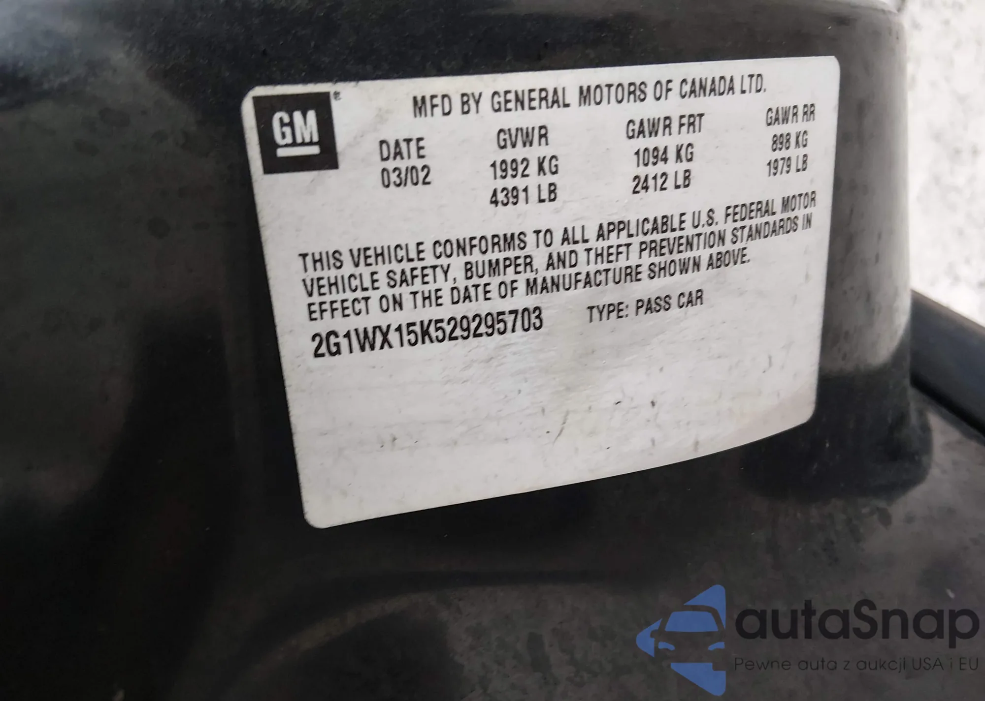 • VIN: 2G1WX15K529295703