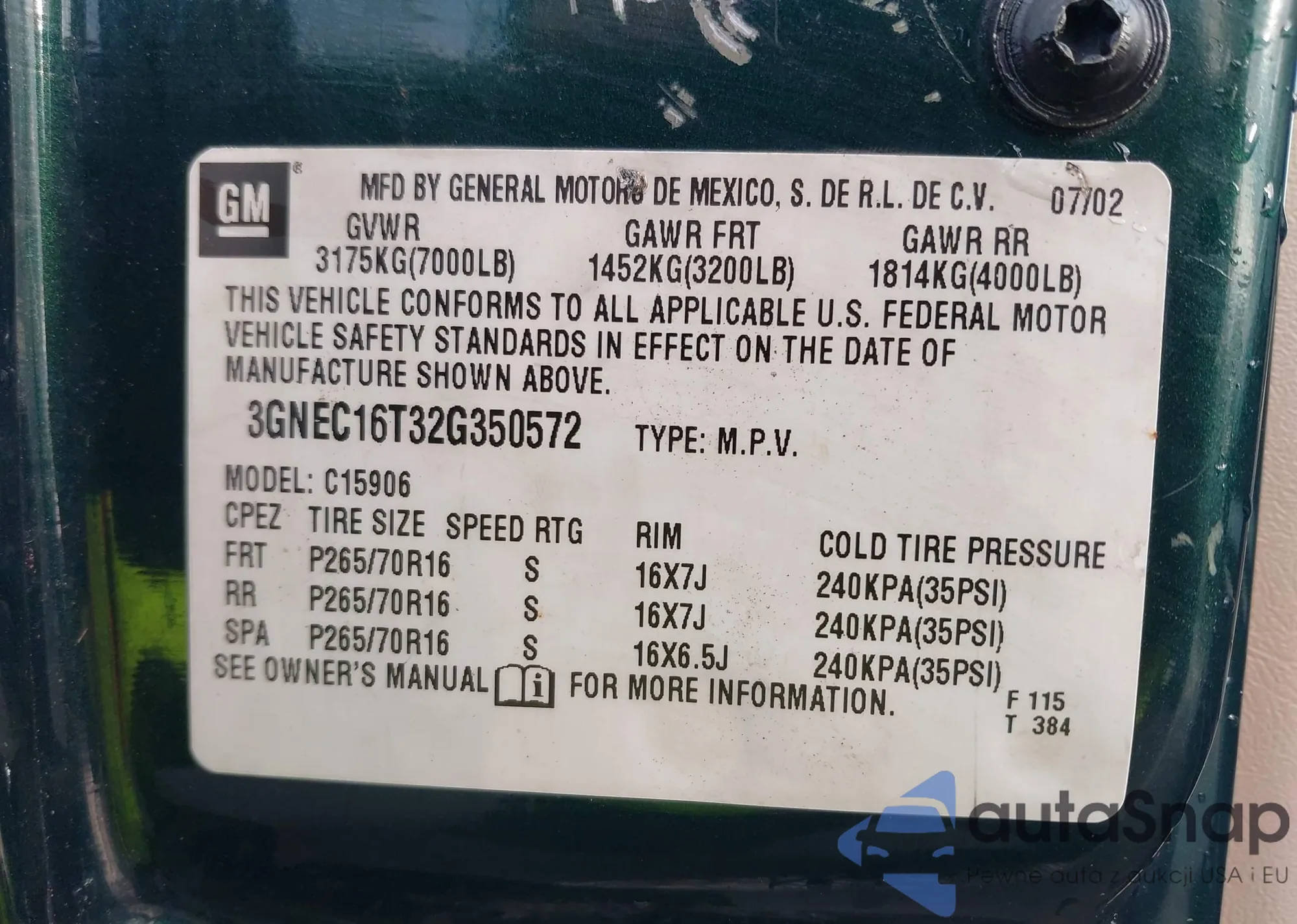 • VIN: 3GNEC16T32G350572
