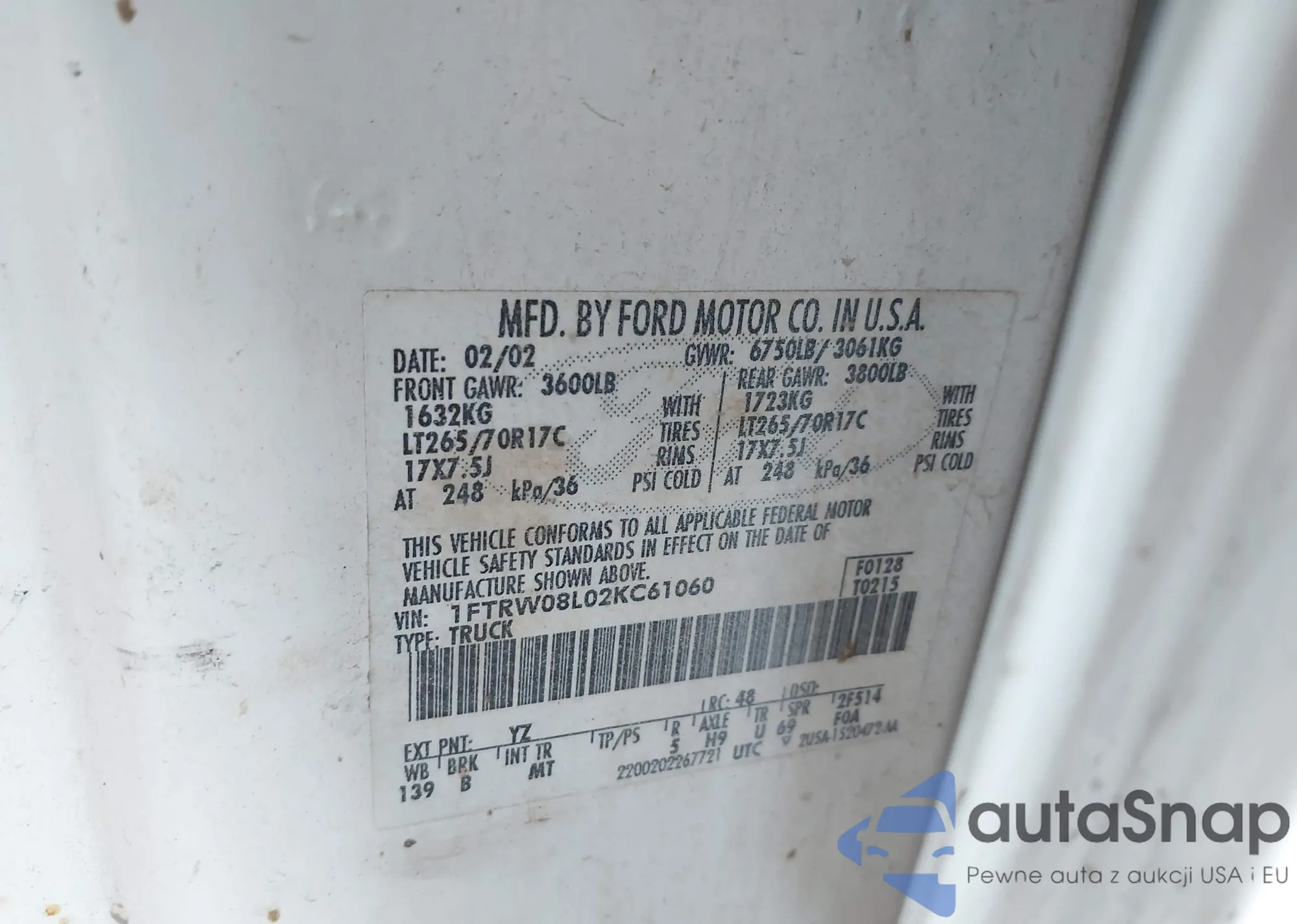VIN: 1FTRW08L02KC61060