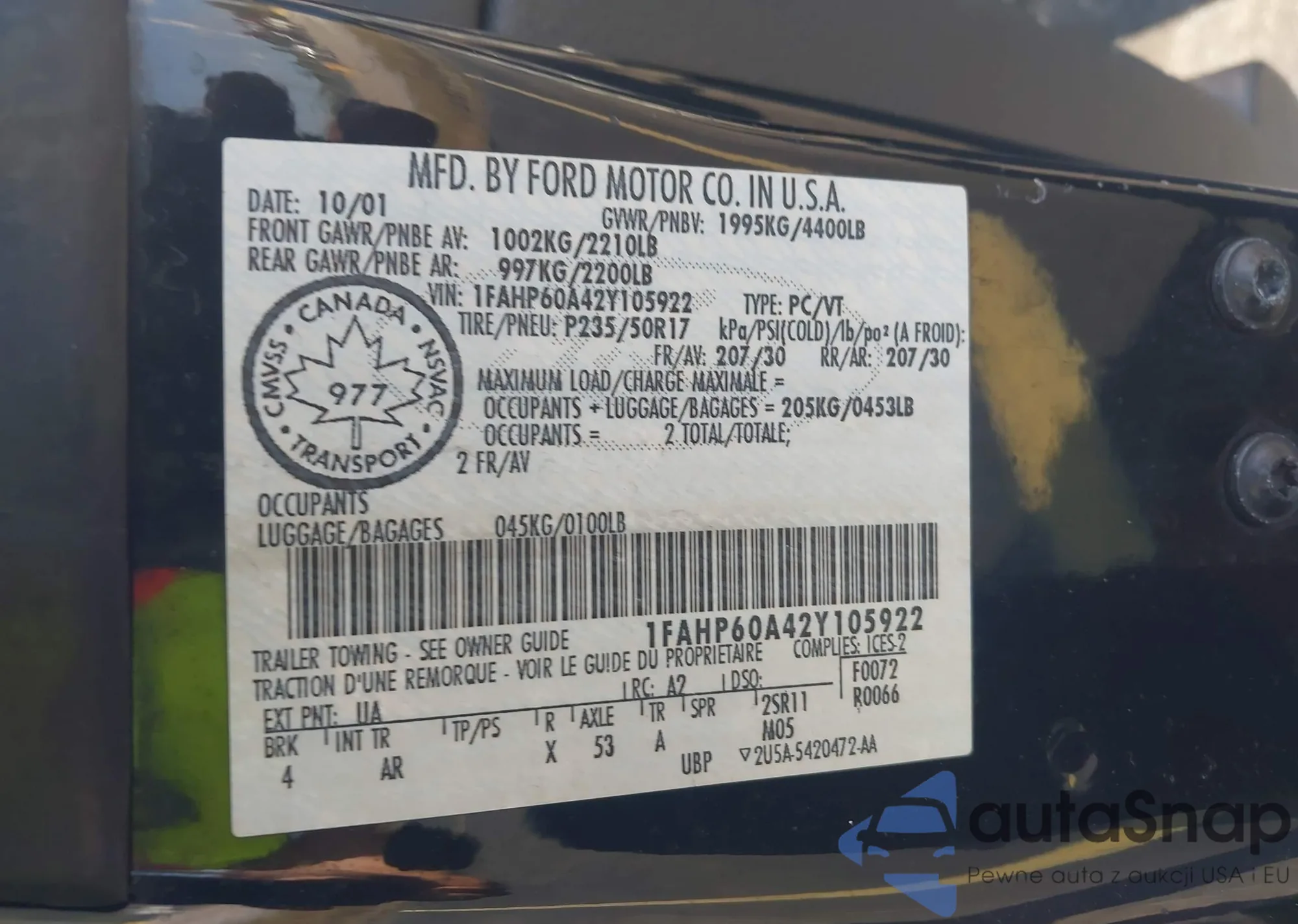 Samochód Ford Thunderbird 2002 (VIN 1FAHP60A42Y105922) nie był wcześniej licytowany. Dokumenty są czyste, przebieg odpowiada lub jest niższy niż średnia rynku. Sprzedaje go firma ubezpieczeniowa – polecamy zakup. Dostawa do portu zajmie ok. 6–8 tygodni.