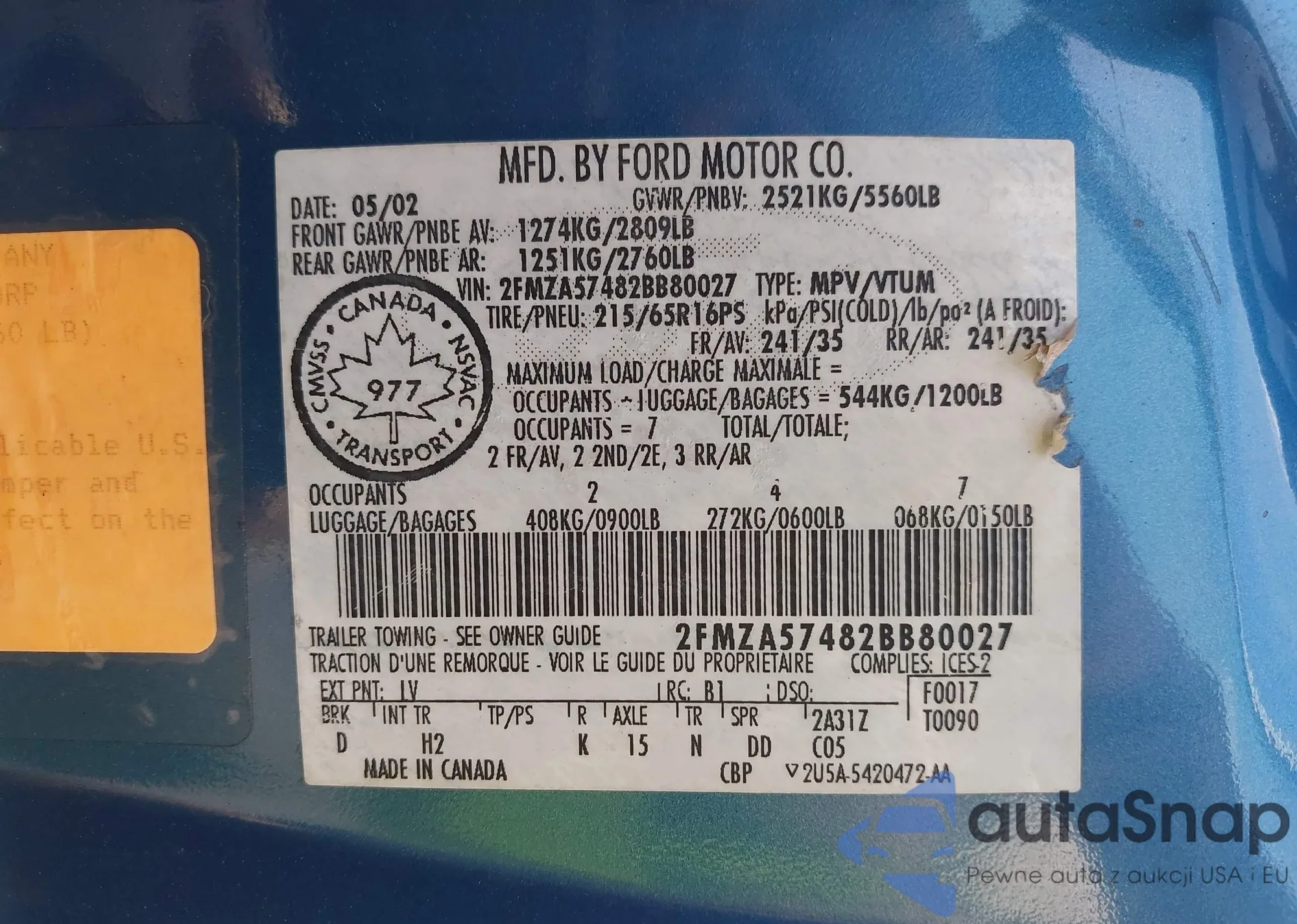 • VIN: 2FMZA57482BB80027