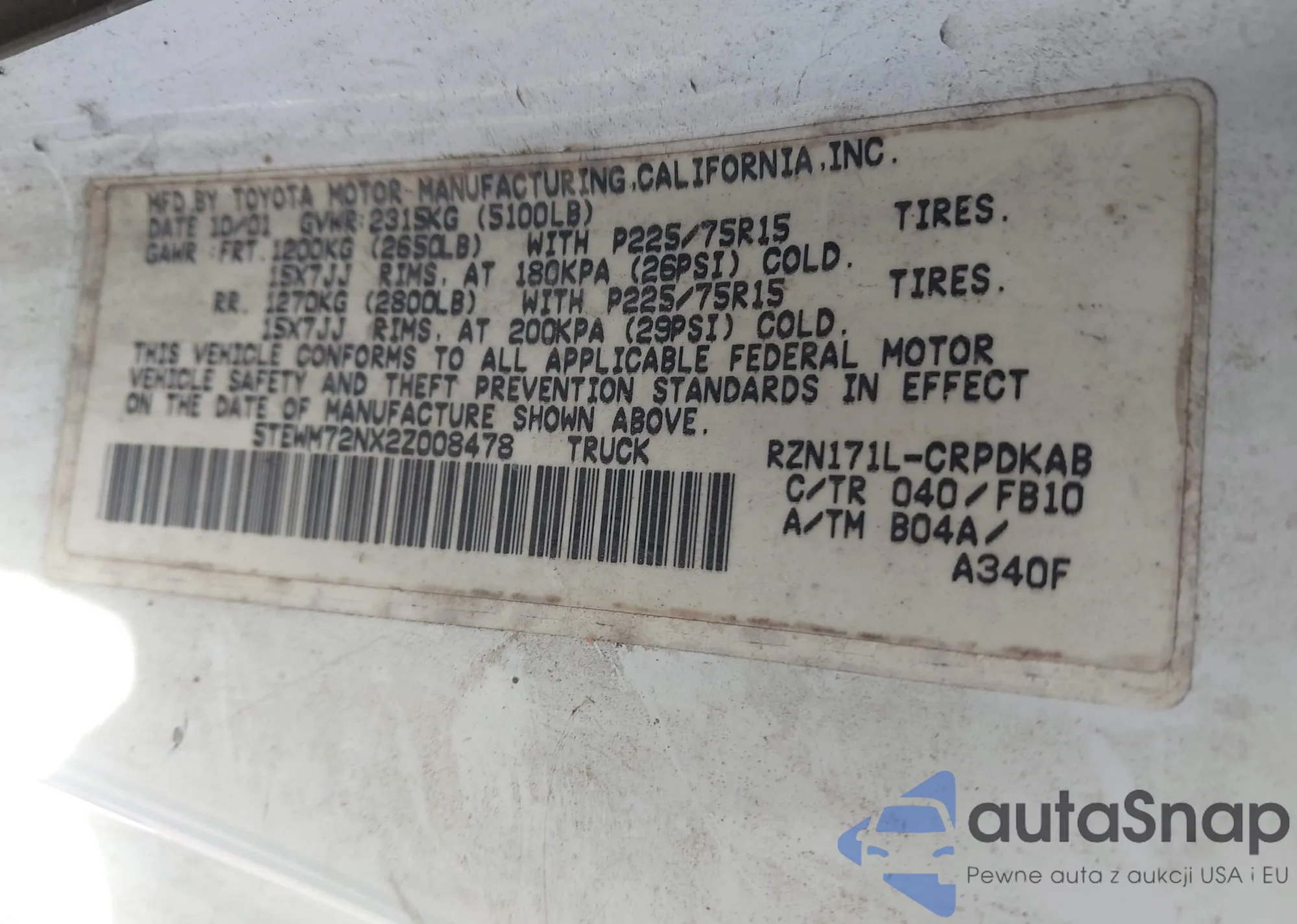 VIN: 5TEWM72NX2Z008478