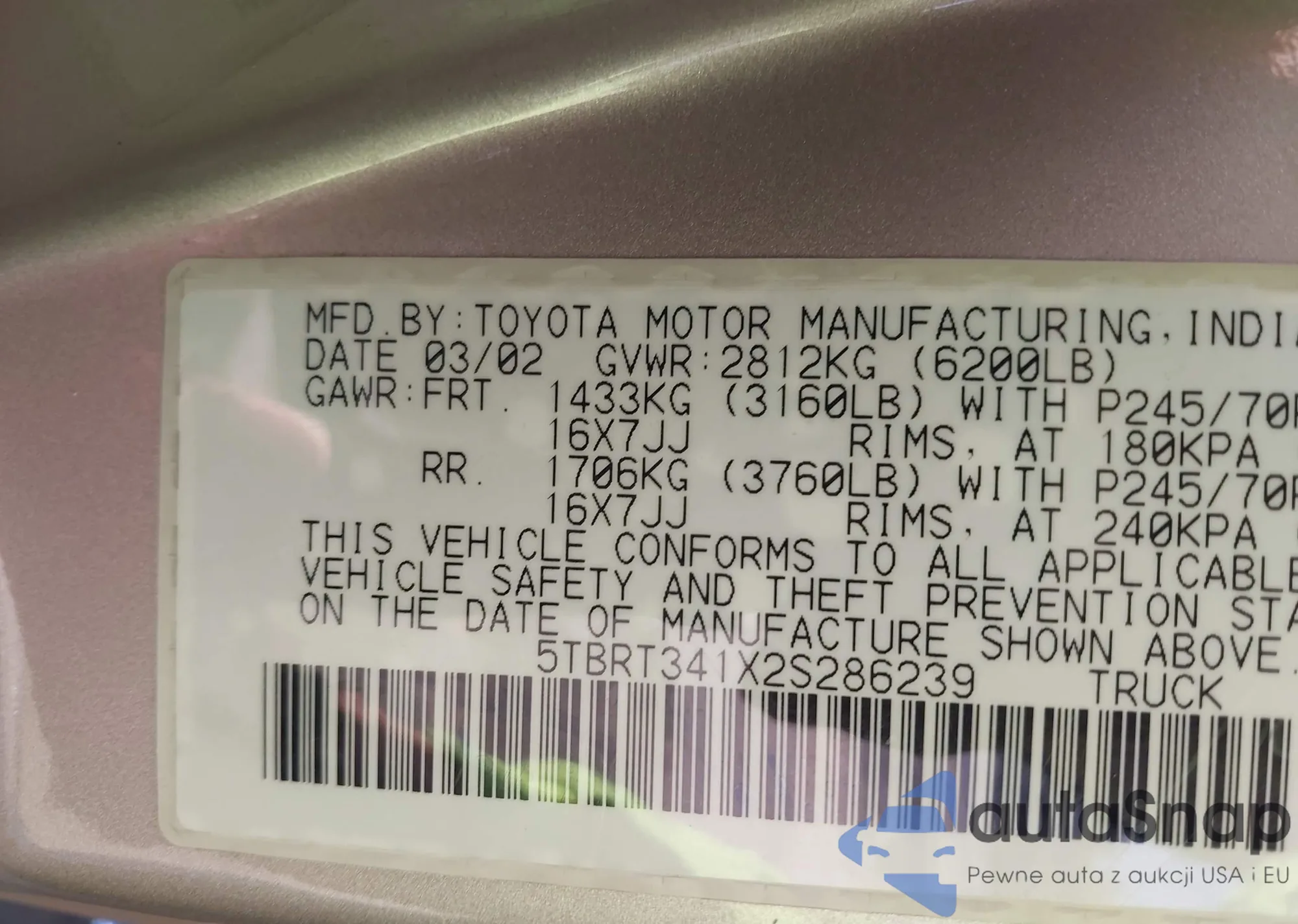 • VIN: 5TBRT341X2S286239
