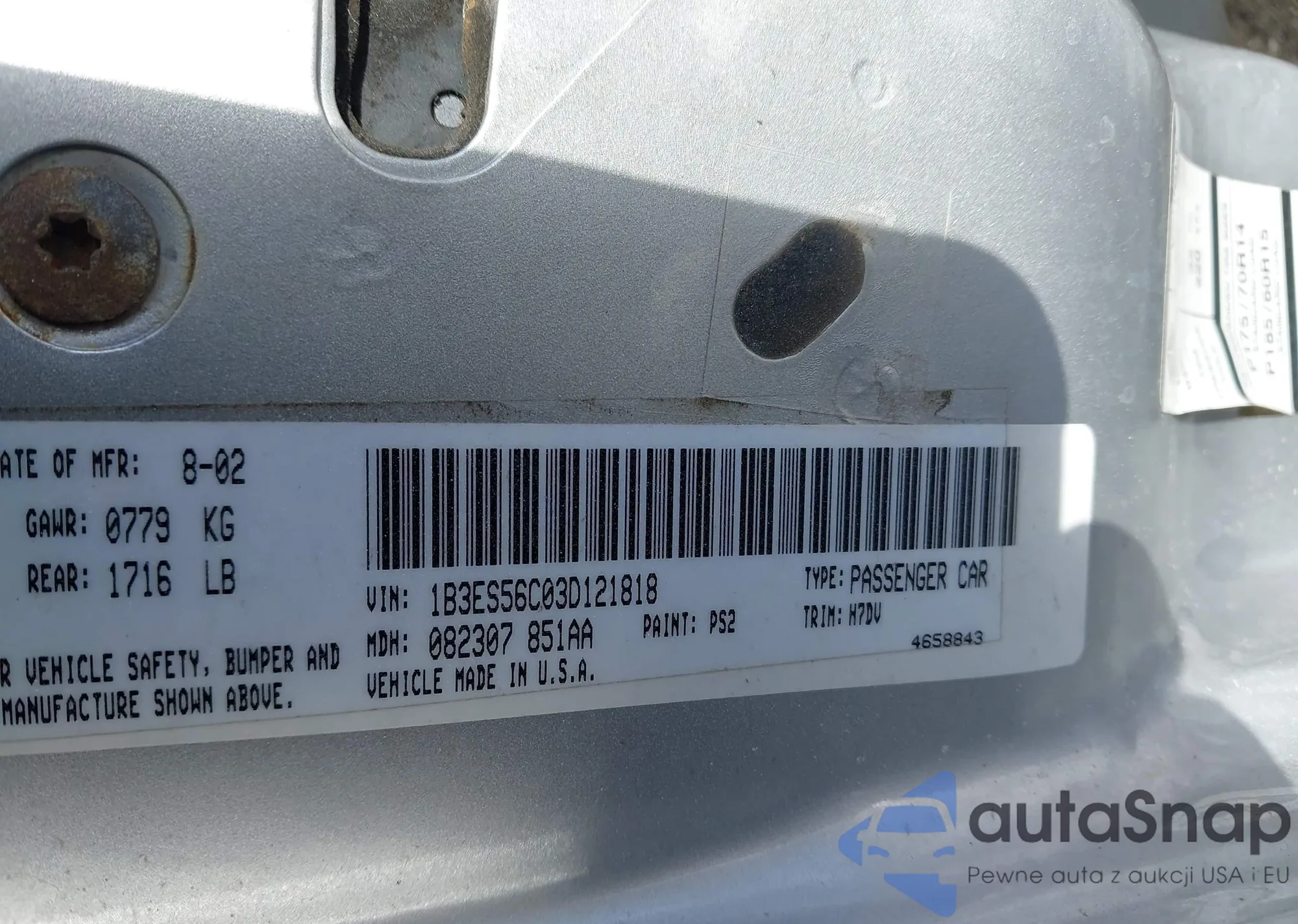 • VIN: 1B3ES56C03D121818