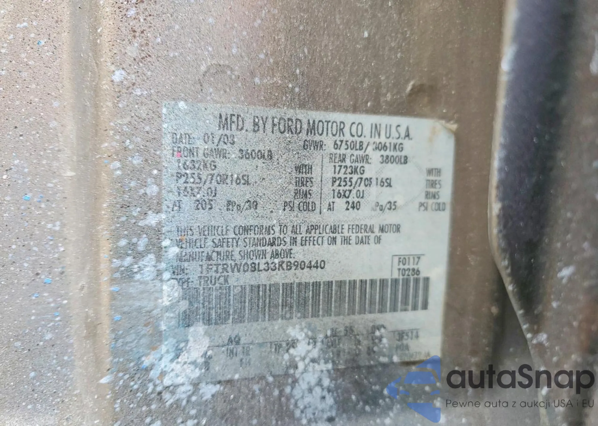 VIN: 1FTRW08L33KB90440