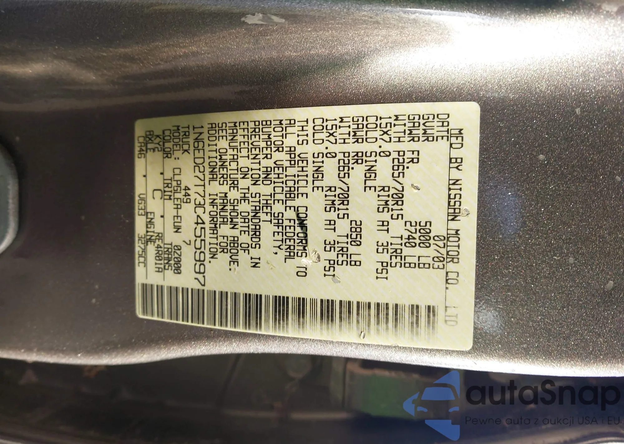 Samochód Nissan Navara (Frontier) 2003 (VIN 1N6ED27T73C455997) sprzedaje go niezweryfikowany sprzedawca. Zalecamy raport Carfax i potwierdzenie możliwości rejestracji pojazdu przed zakupem.