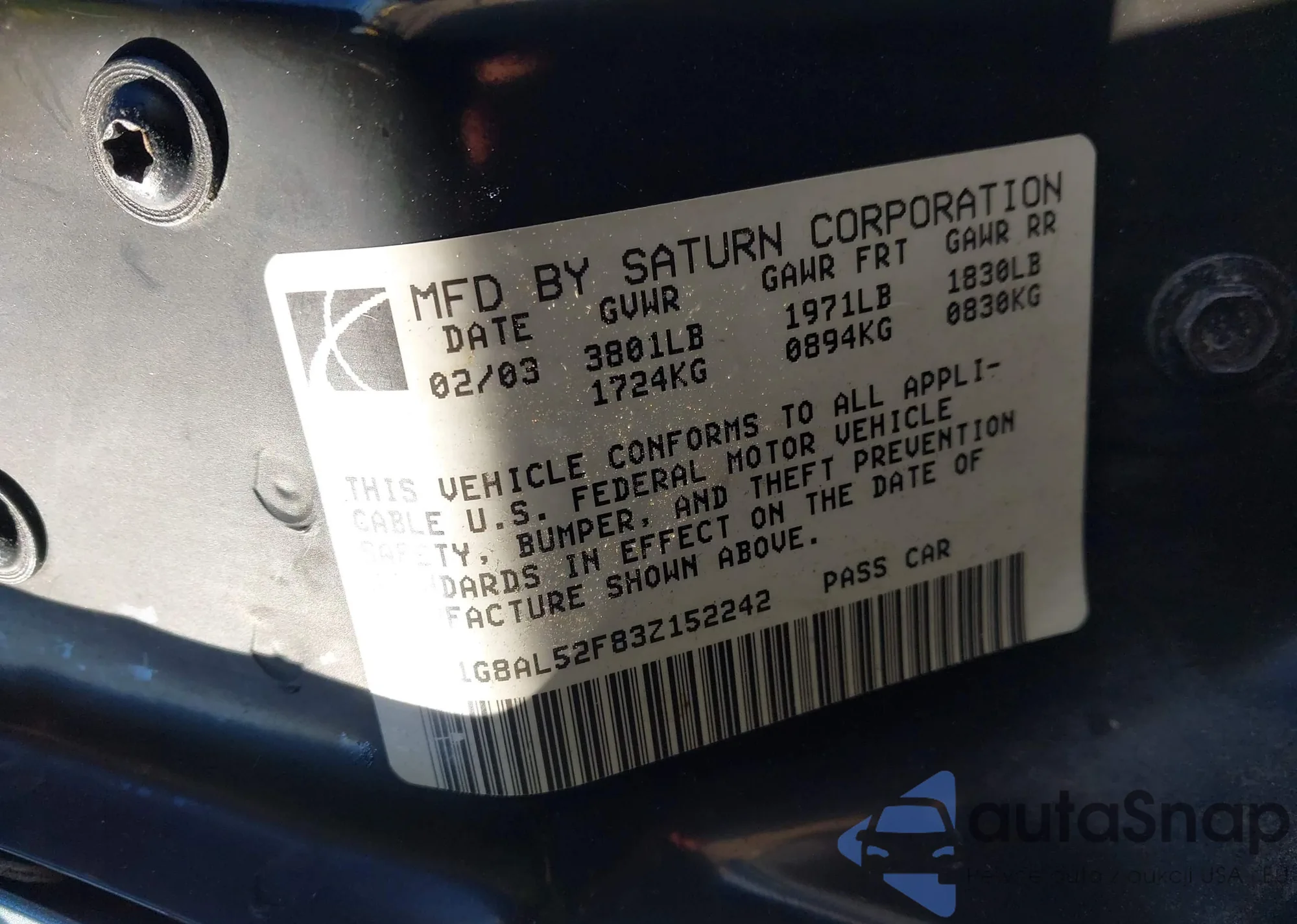 • VIN: 1G8AL52F83Z152242