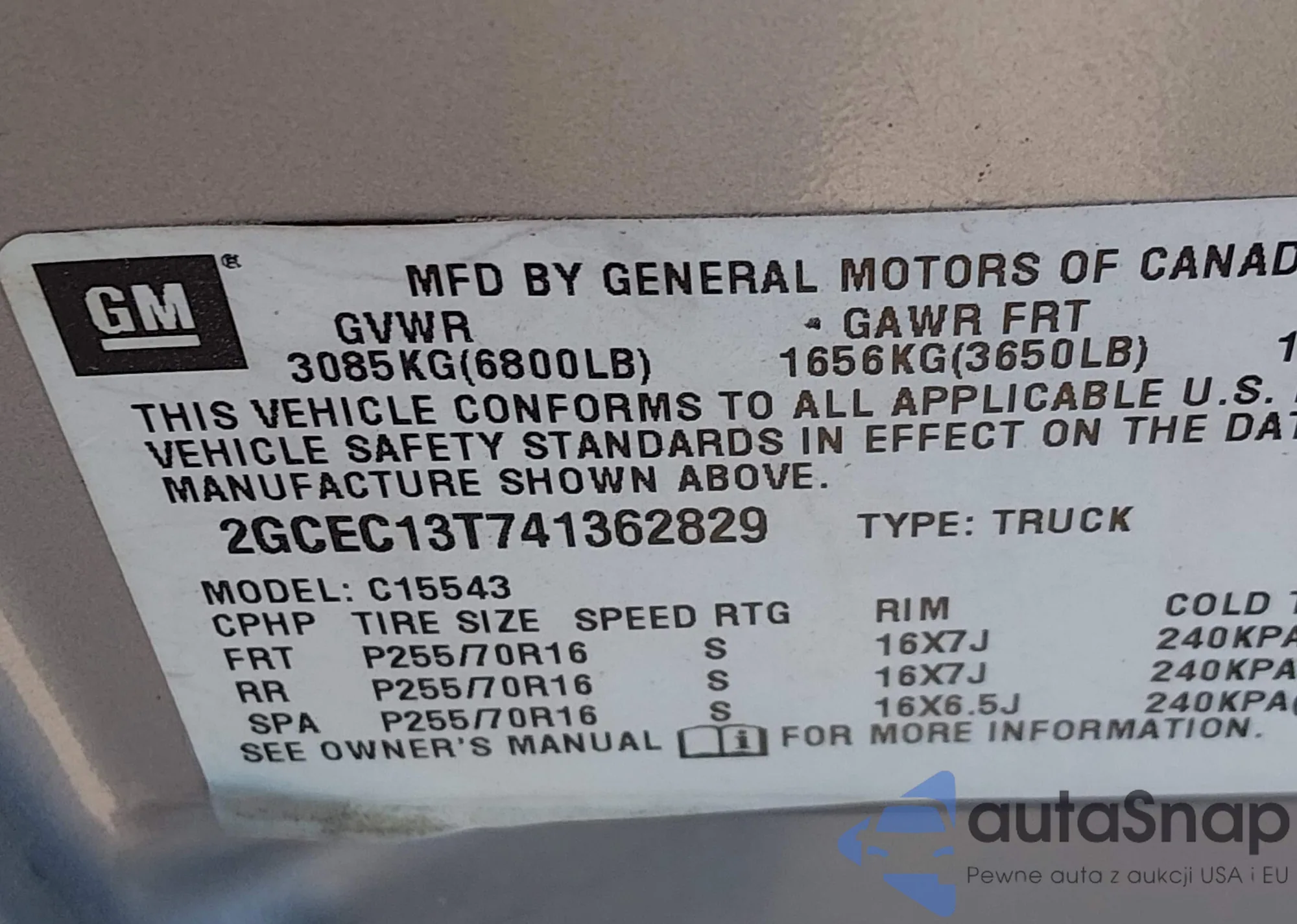 • VIN: 2GCEC13T741362829