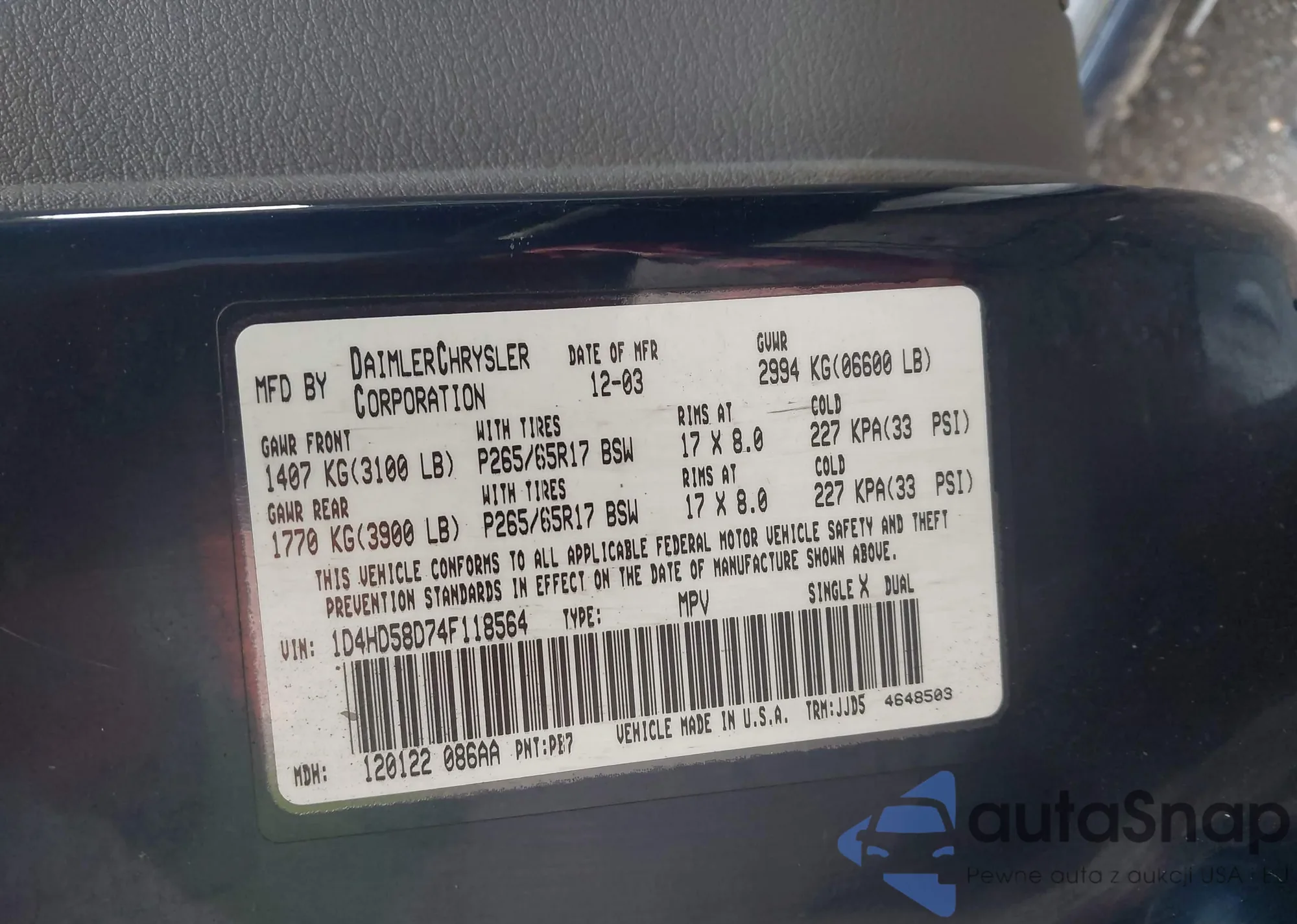Dodge Durango 2004 – Historia pojazdu (sprzedany na IAAI)