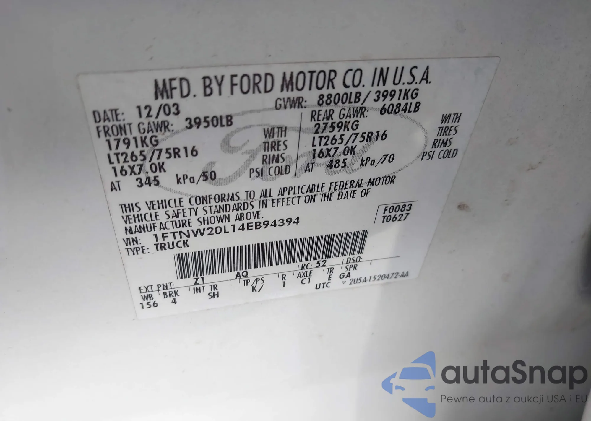VIN: 1FTNW20L14EB94394