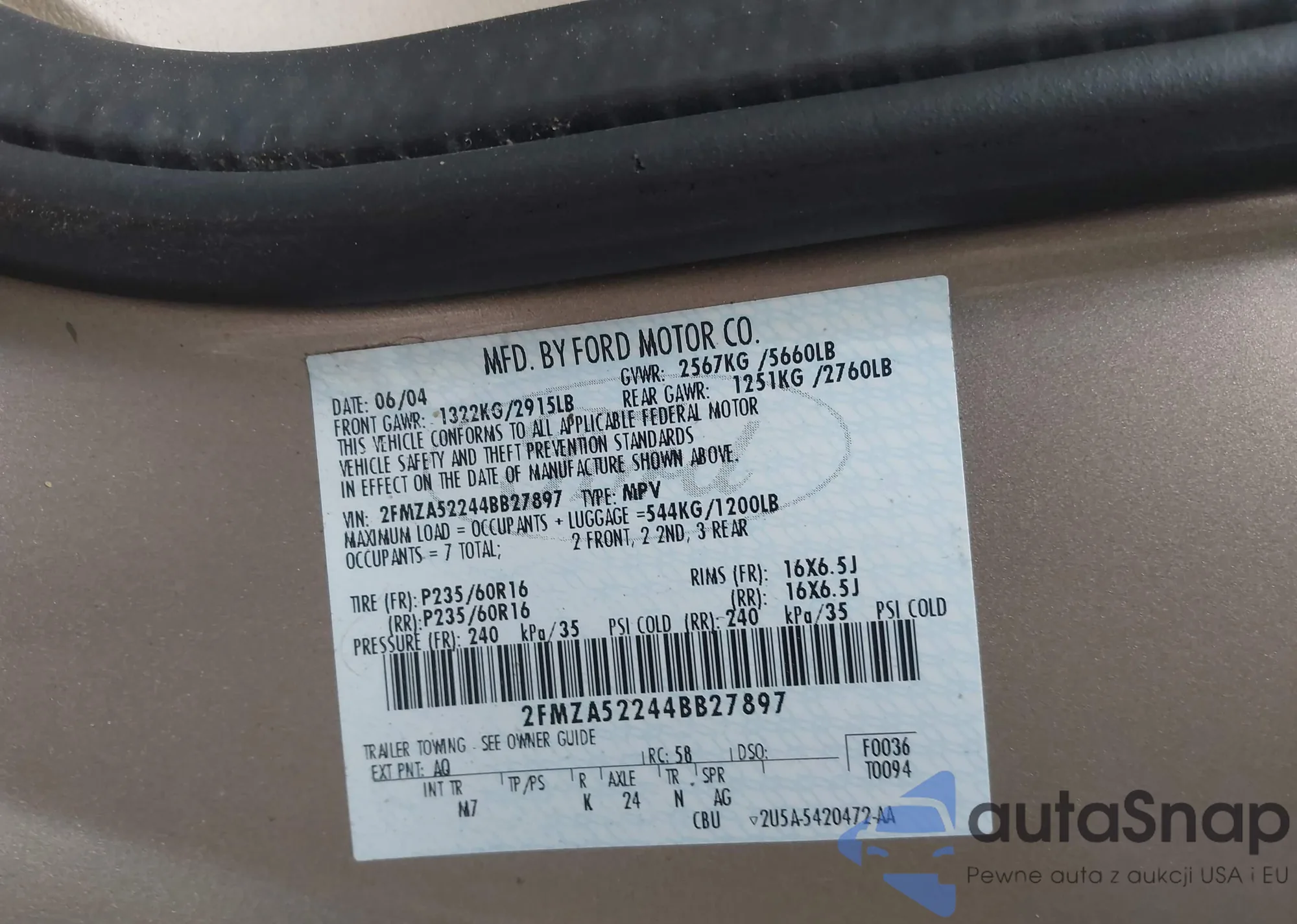 • VIN: 2FMZA52244BB27897