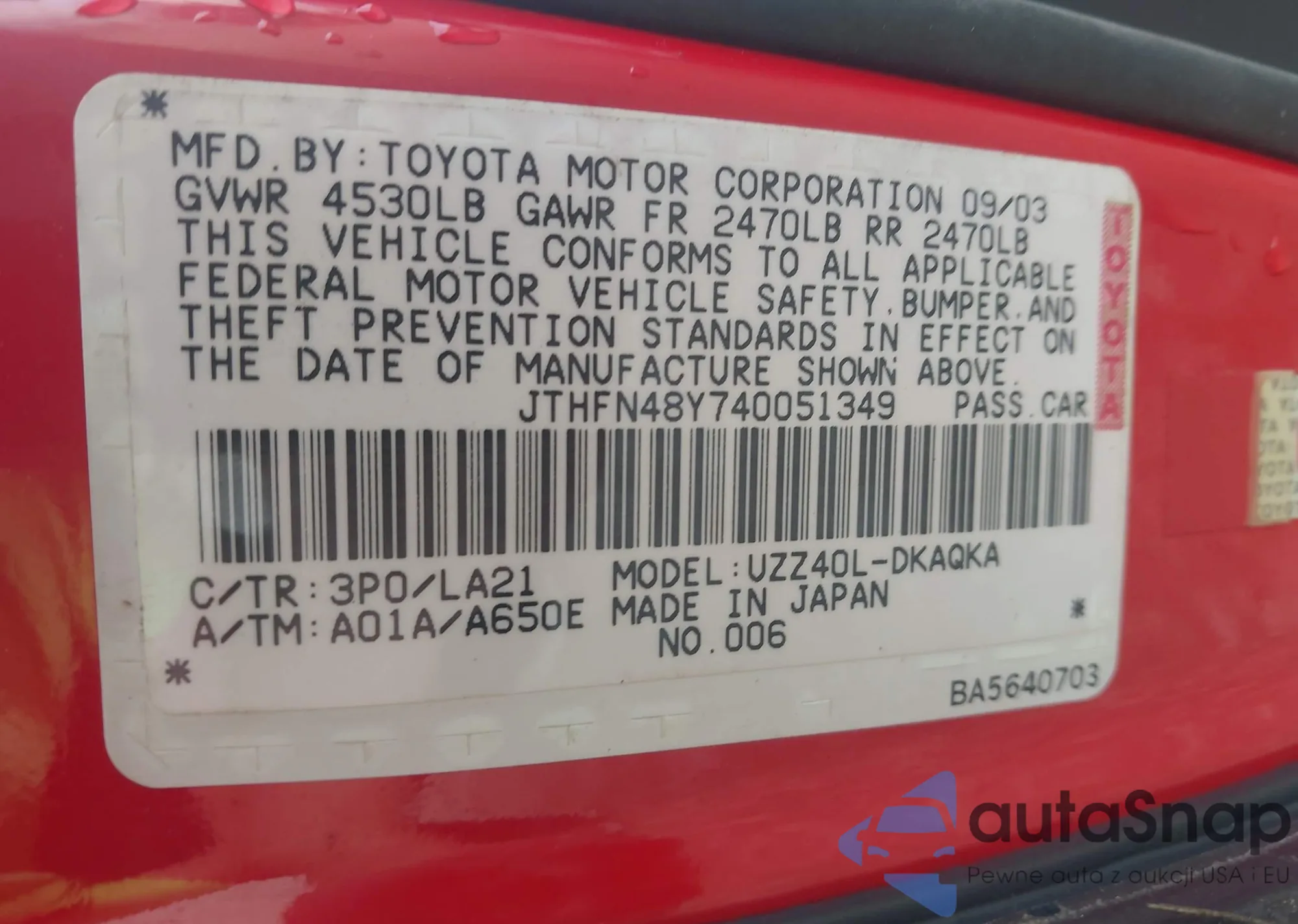 Samochód Lexus SC 2004 (VIN JTHFN48Y740051349) sprzedaje go niezweryfikowany sprzedawca. Zalecamy raport Carfax i potwierdzenie możliwości rejestracji pojazdu przed zakupem.