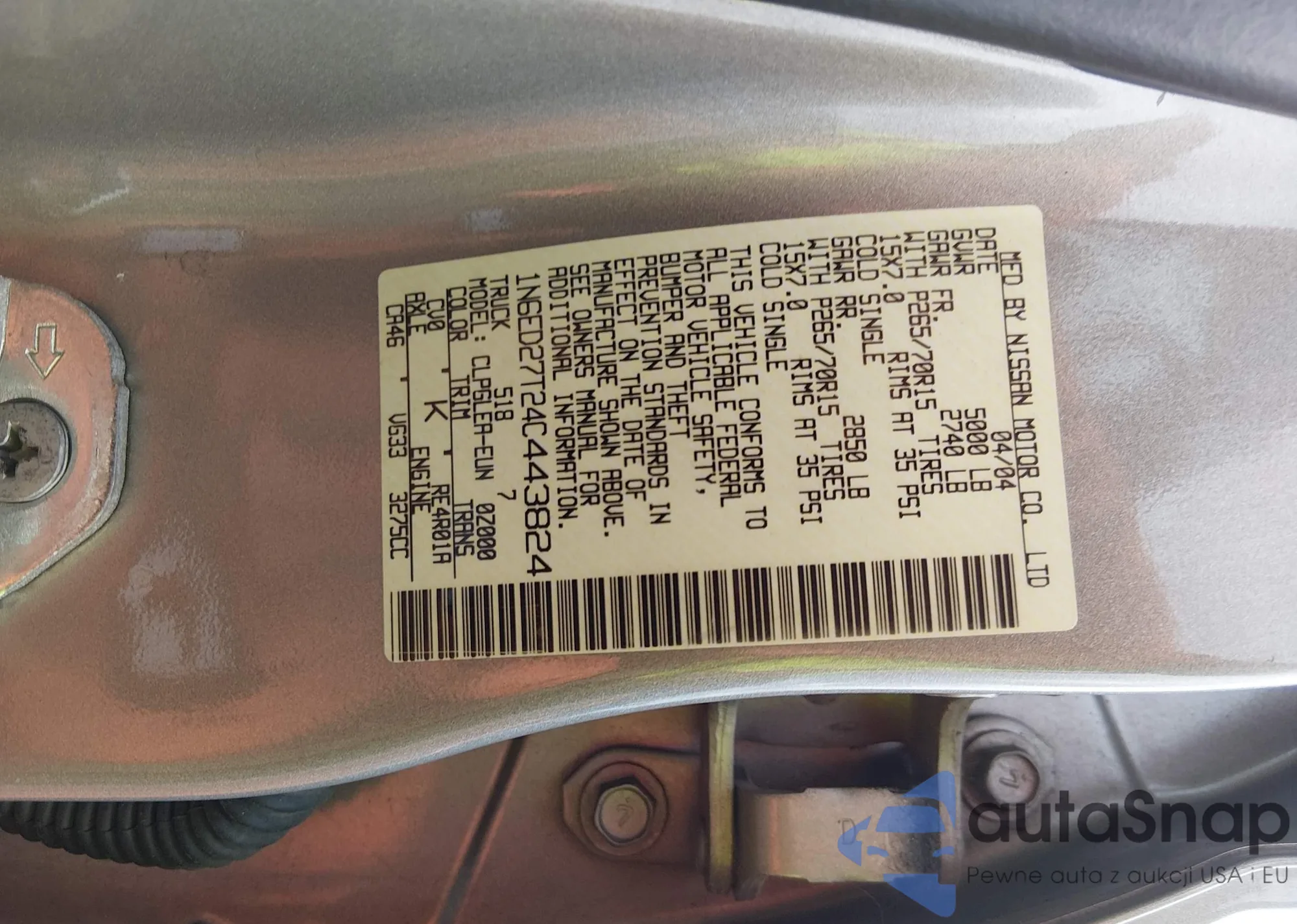 Samochód Nissan Navara (Frontier) 2004 (VIN 1N6ED27T24C443824) sprzedaje go niezweryfikowany sprzedawca. Zalecamy raport Carfax i potwierdzenie możliwości rejestracji pojazdu przed zakupem.