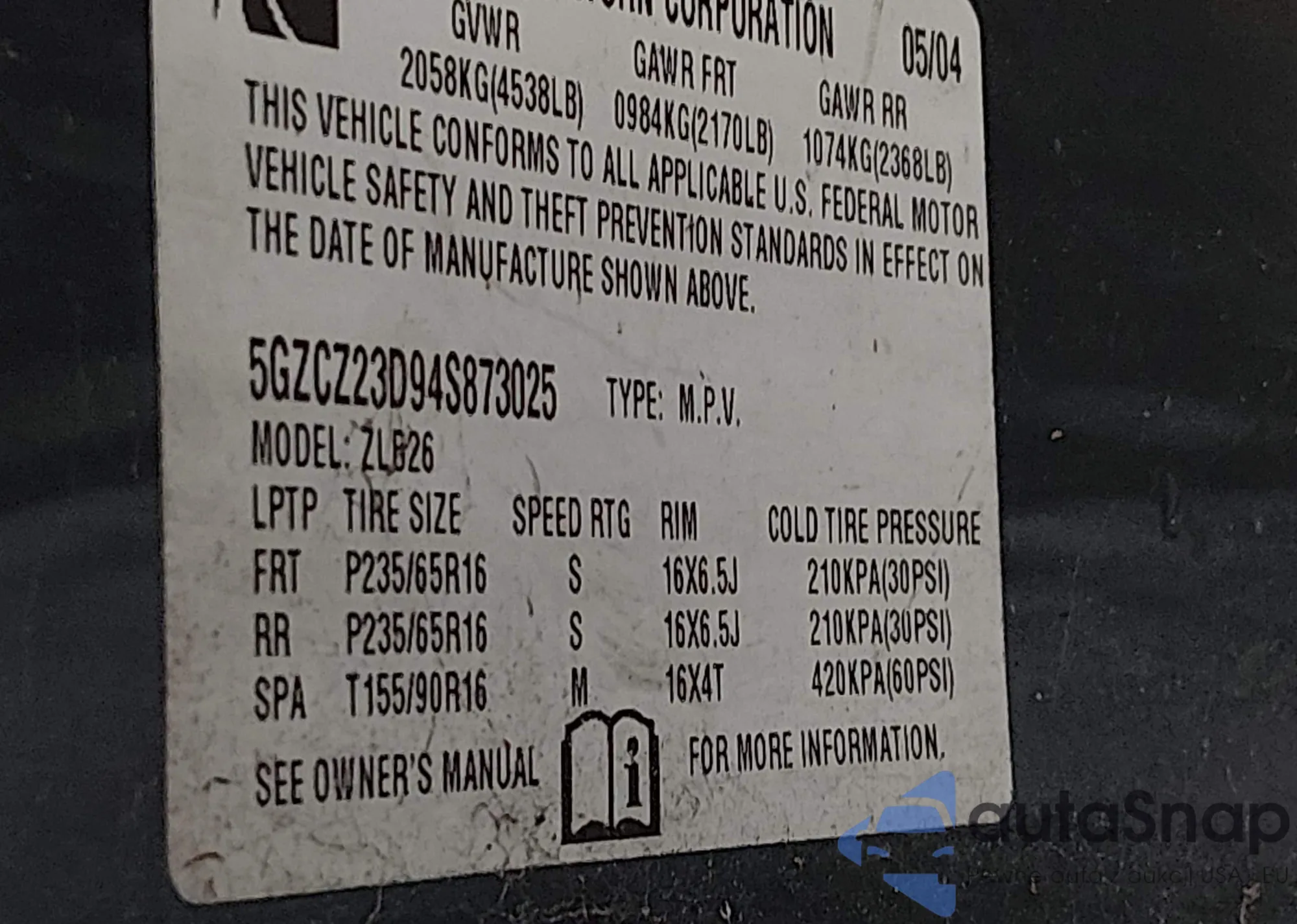 VIN: 5GZCZ23D94S873025