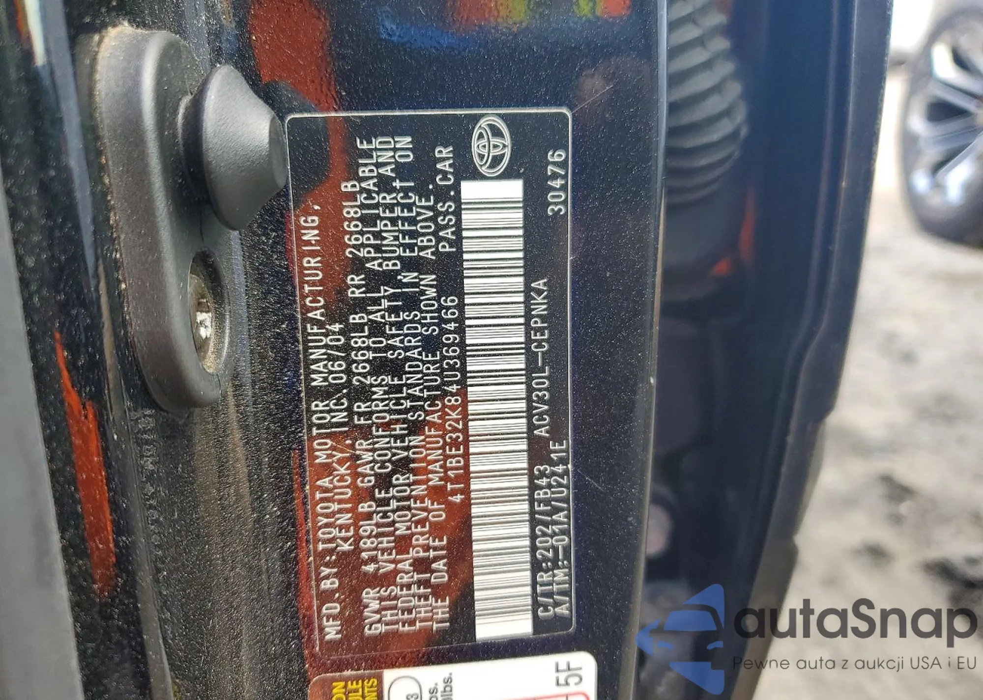 Samochód Toyota Camry 2004 (VIN 4T1BE32K84U369466) sprzedaje go niezweryfikowany sprzedawca. Zalecamy raport Carfax i potwierdzenie możliwości rejestracji pojazdu przed zakupem.