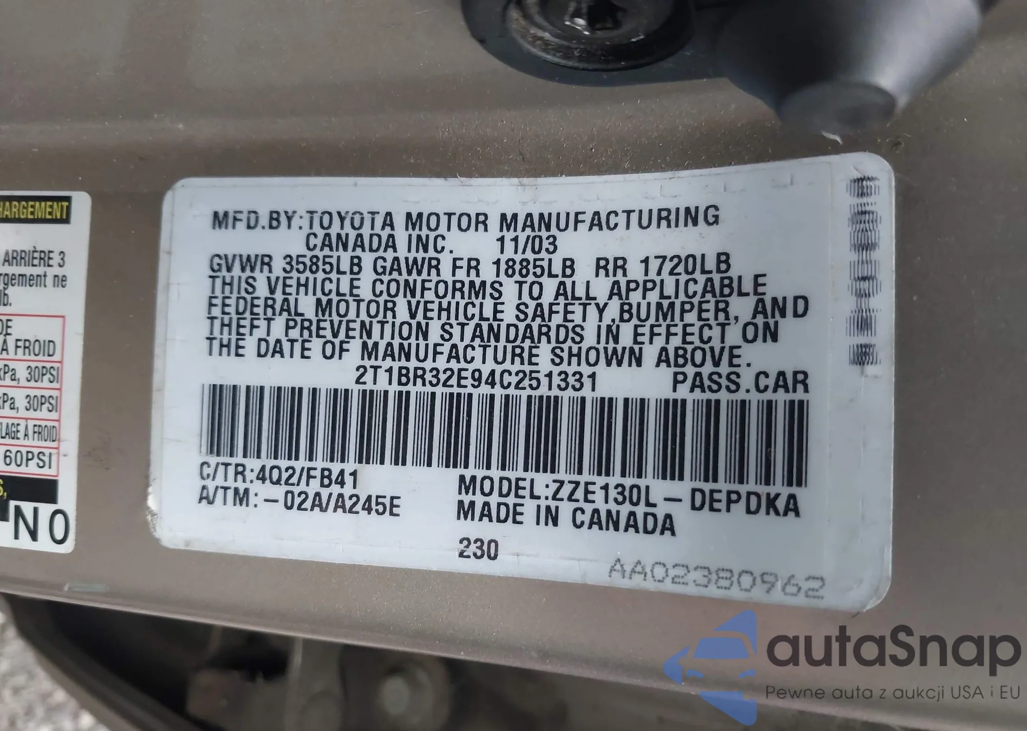 VIN: 2T1BR32E94C251331
