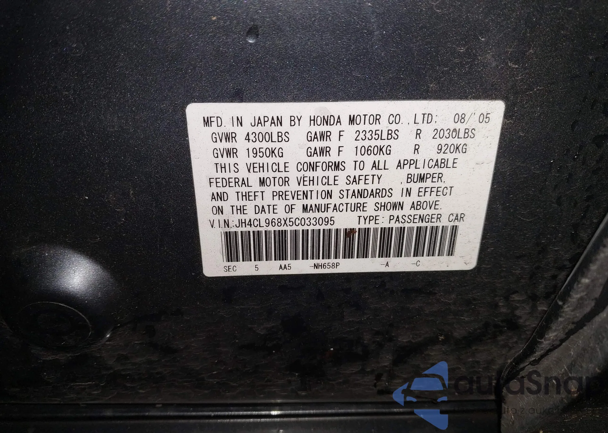 • VIN: JH4CL968X5C033095