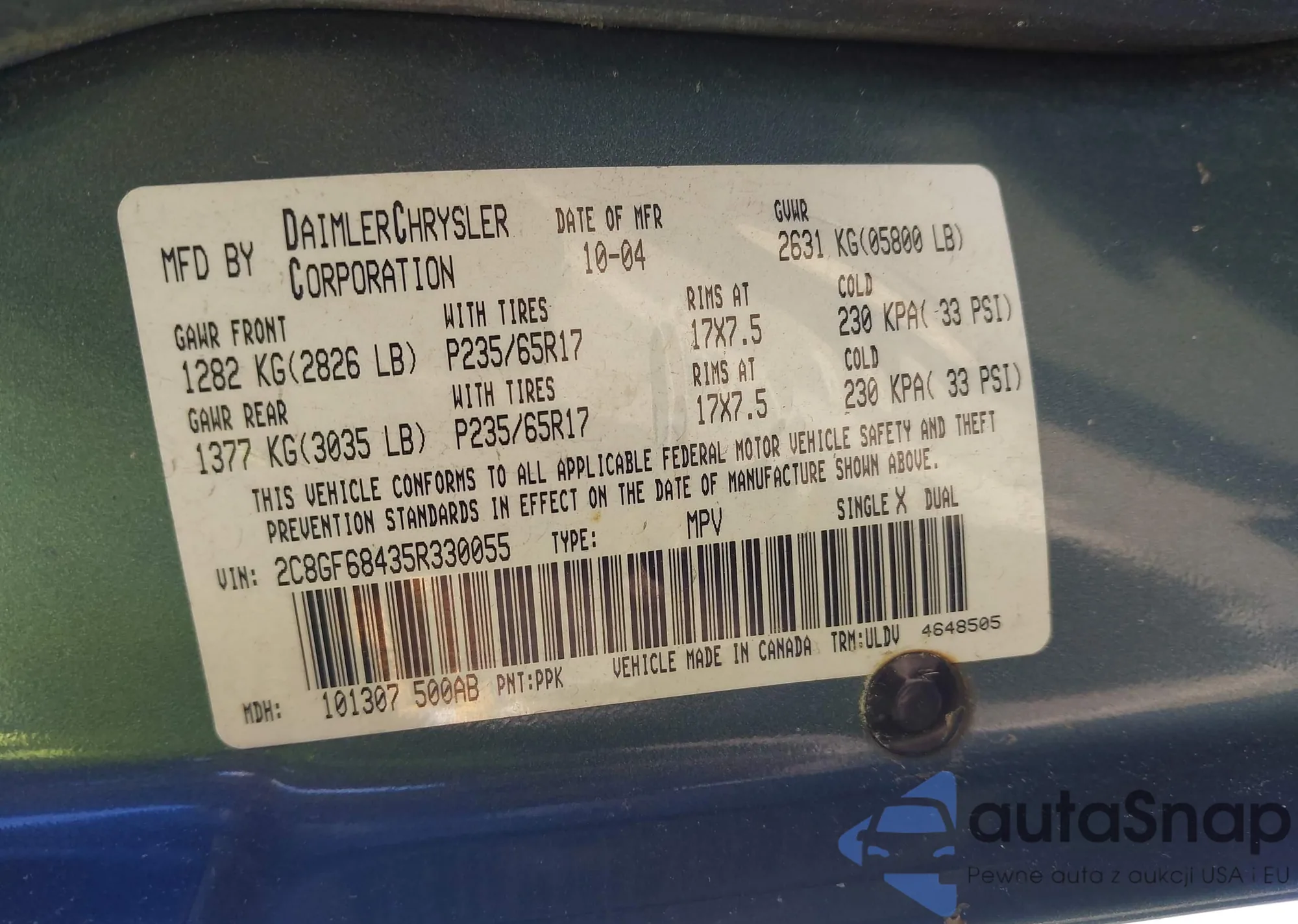 • VIN: 2C8GF68435R330055