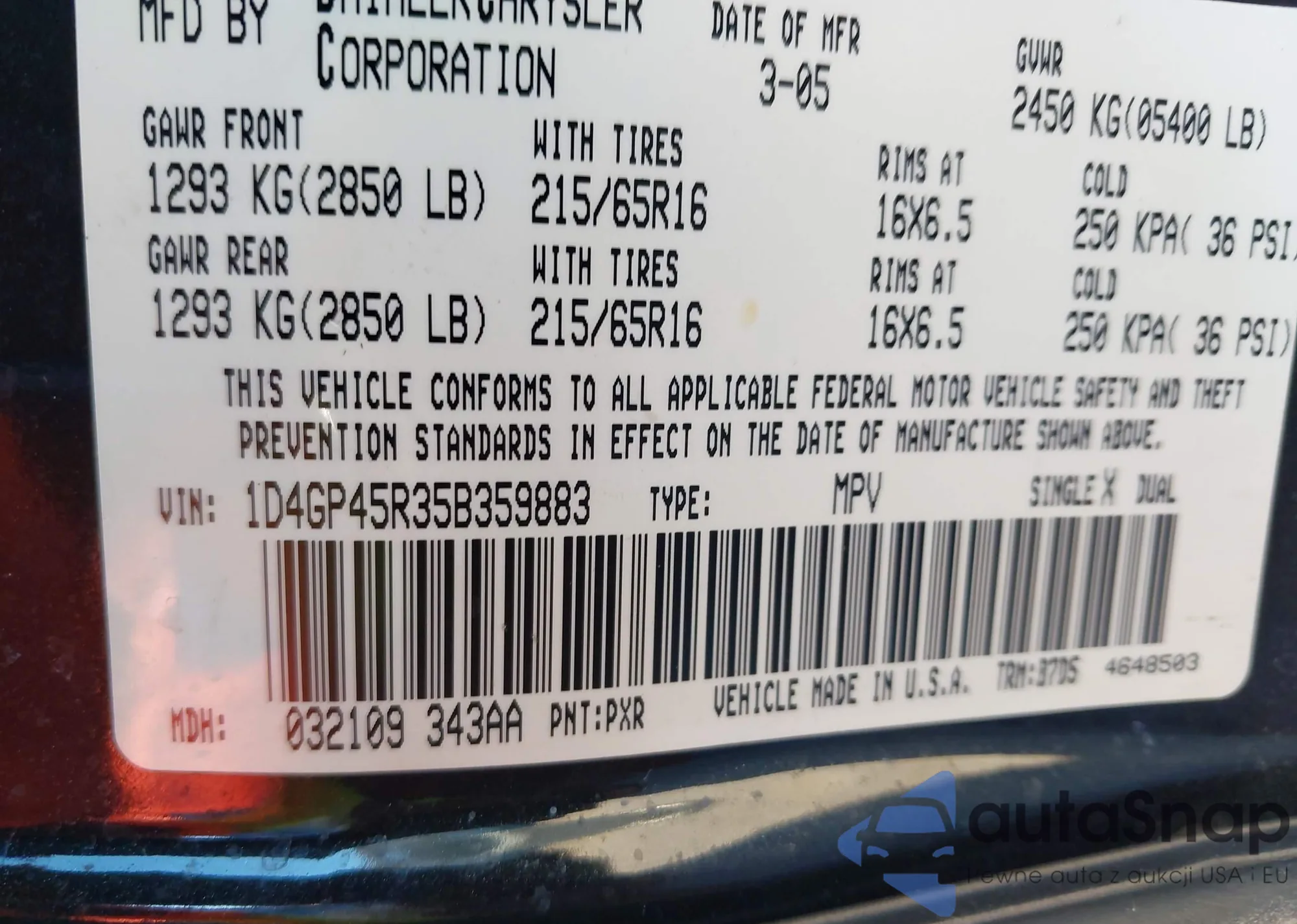 • VIN: 1D4GP45R35B359883
