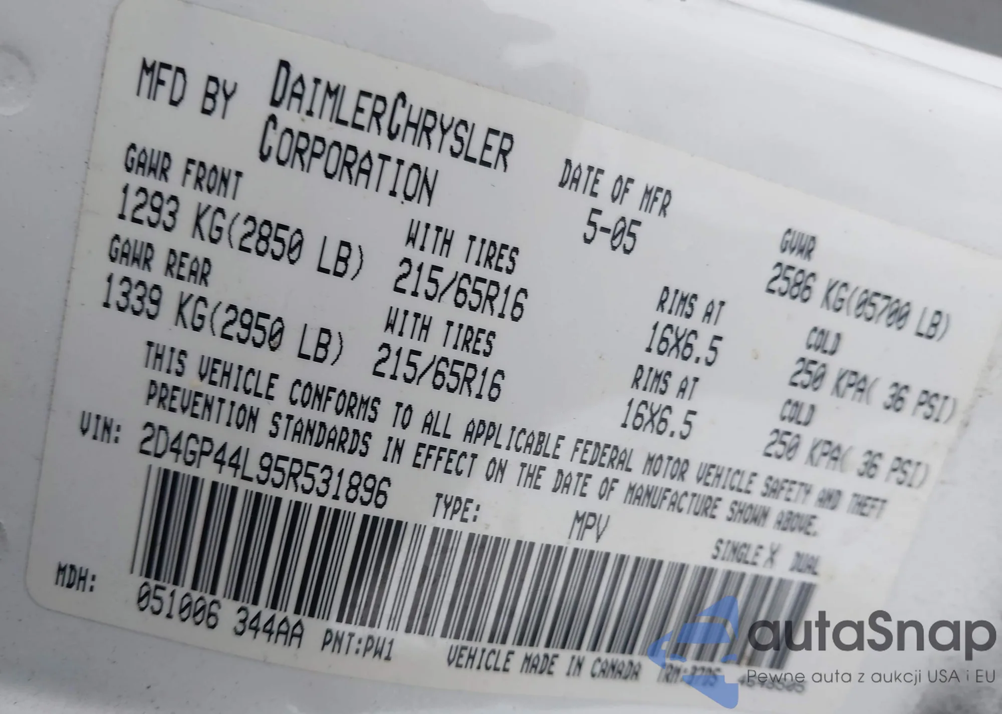 VIN: 2D4GP44L95R531896