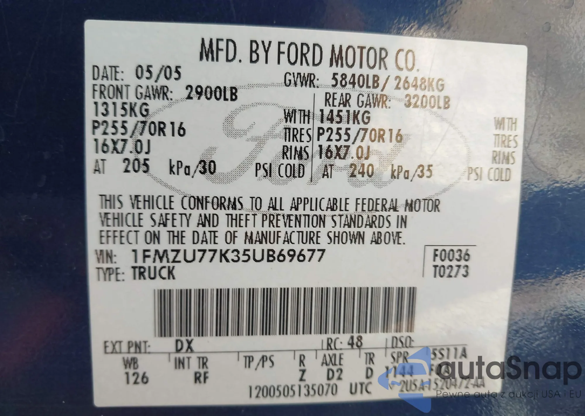 • VIN: 1FMZU77K35UB69677