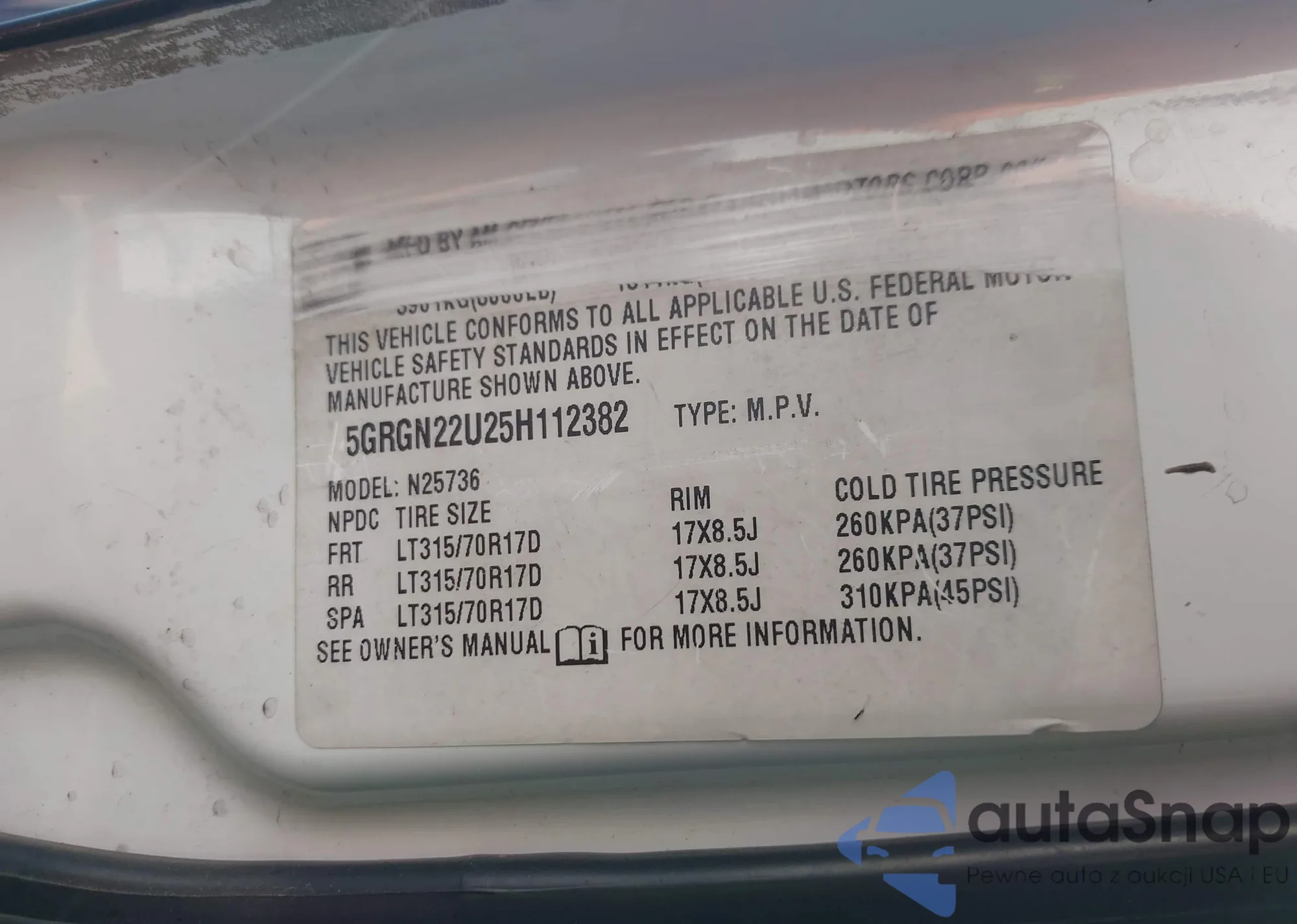 VIN: 5GRGN22U25H112382