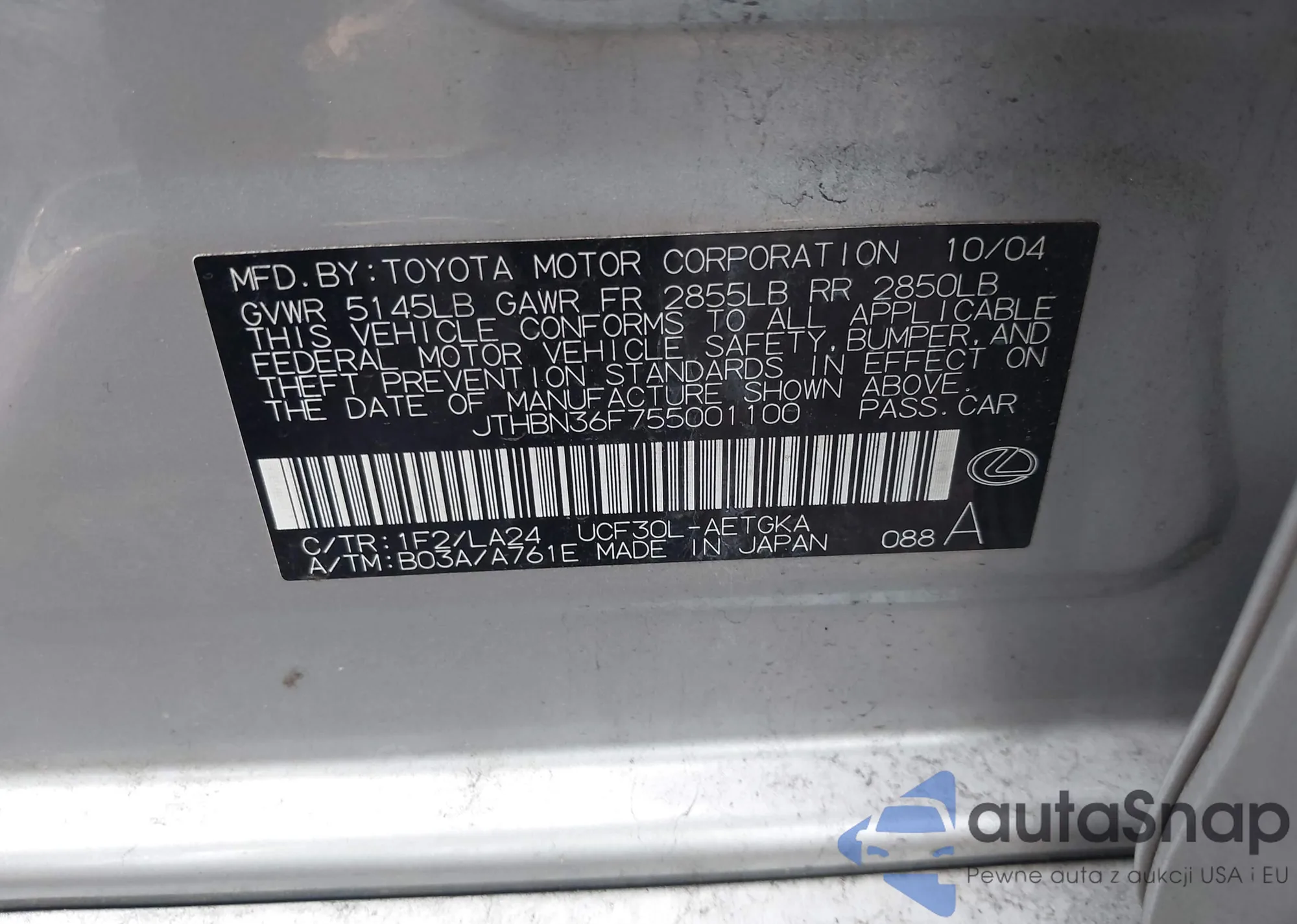 VIN: JTHBN36F755001100