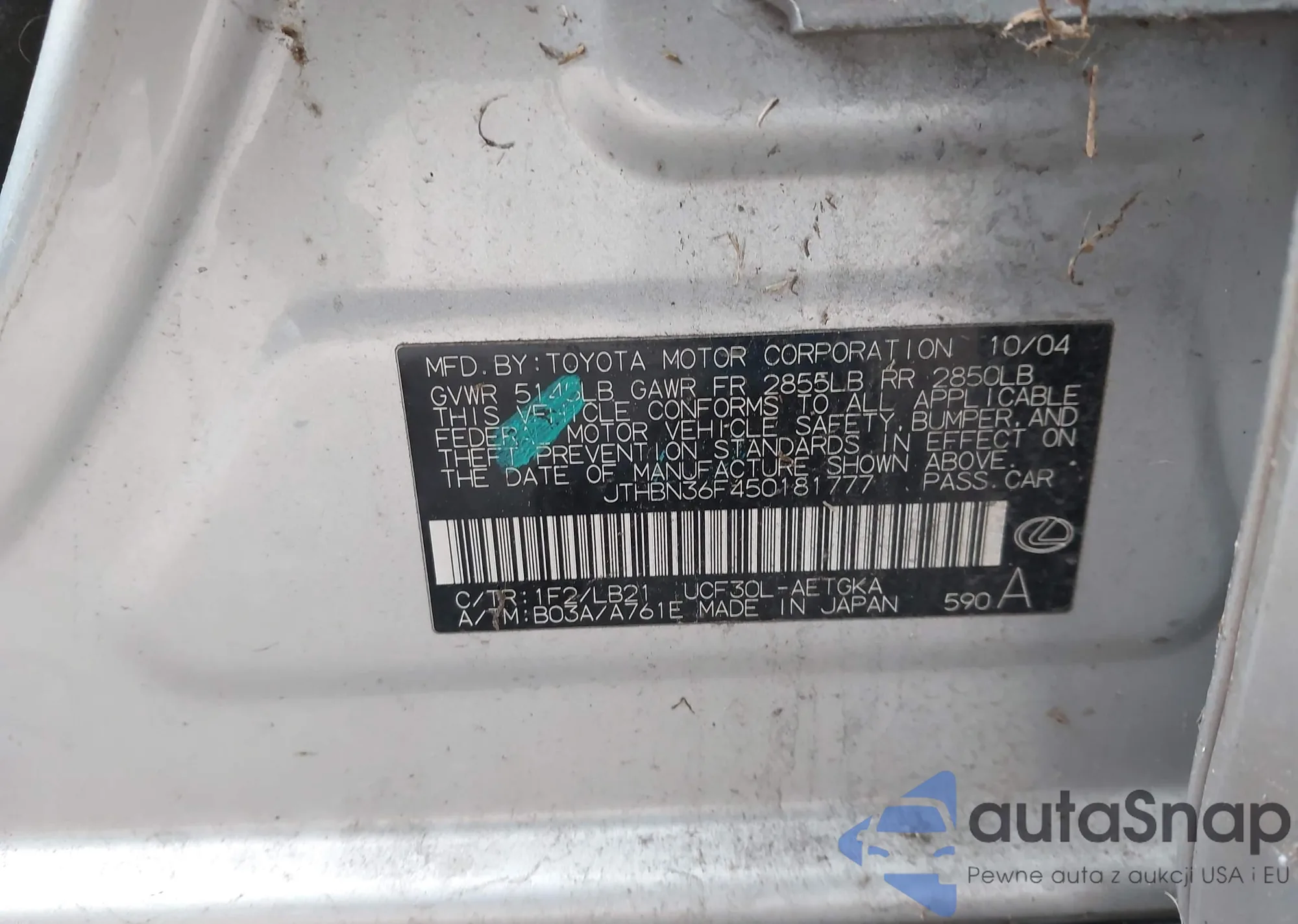 VIN: JTHBN36F450181777