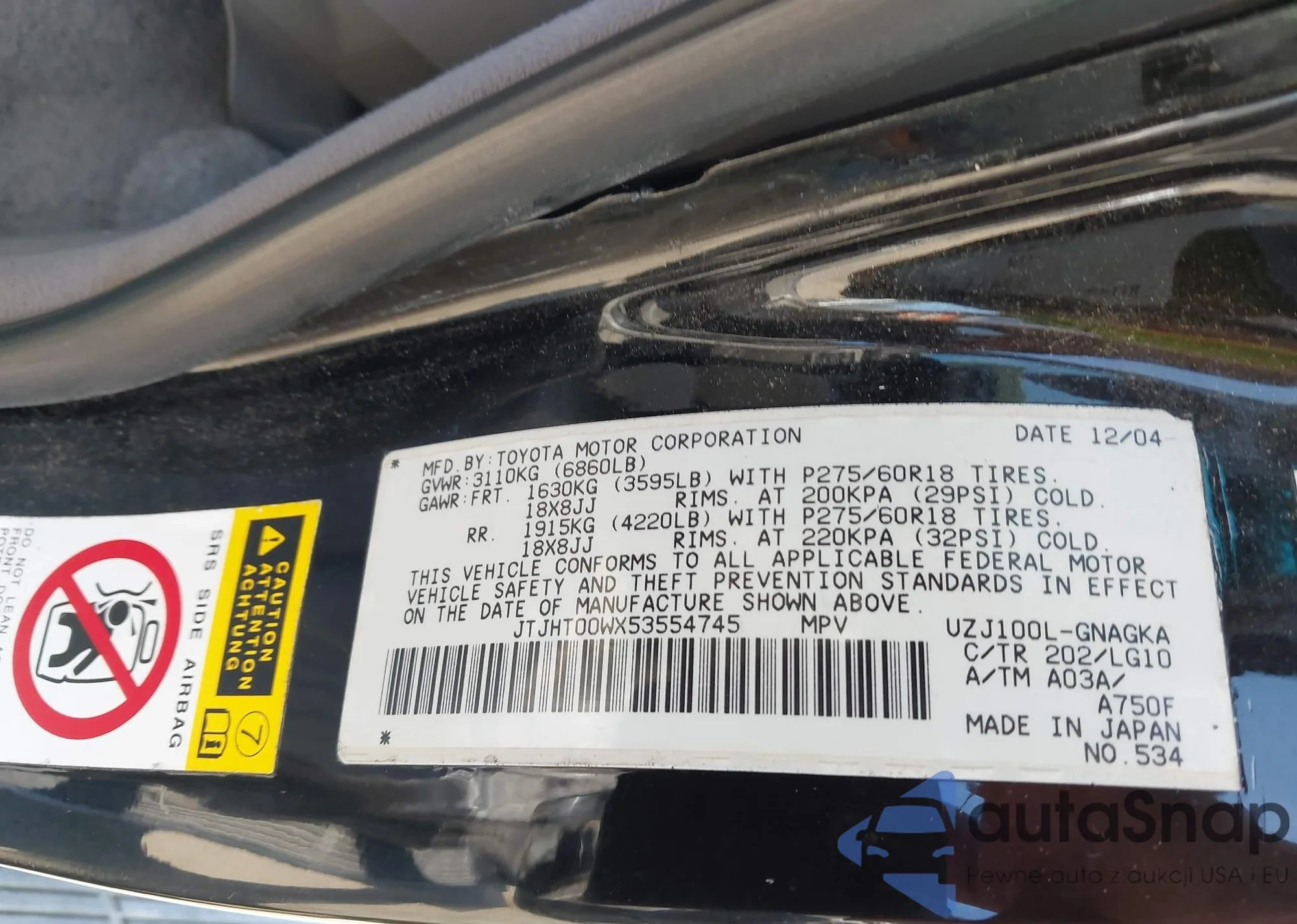 Samochód Lexus LX 2005 (VIN JTJHT00WX53554745) sprzedaje go niezweryfikowany sprzedawca. Zalecamy raport Carfax i potwierdzenie możliwości rejestracji pojazdu przed zakupem.