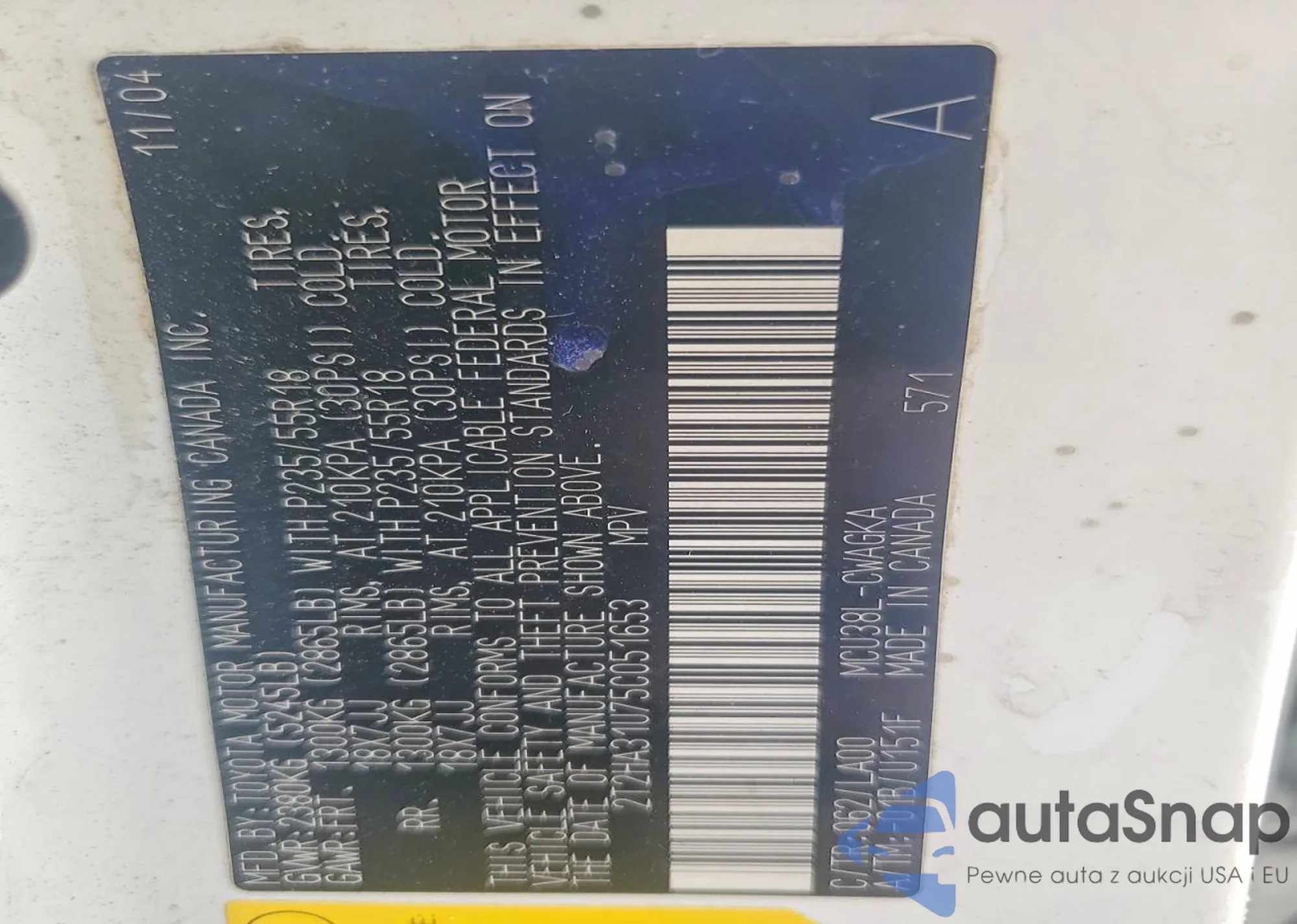 VIN: 2T2HA31U75C051653