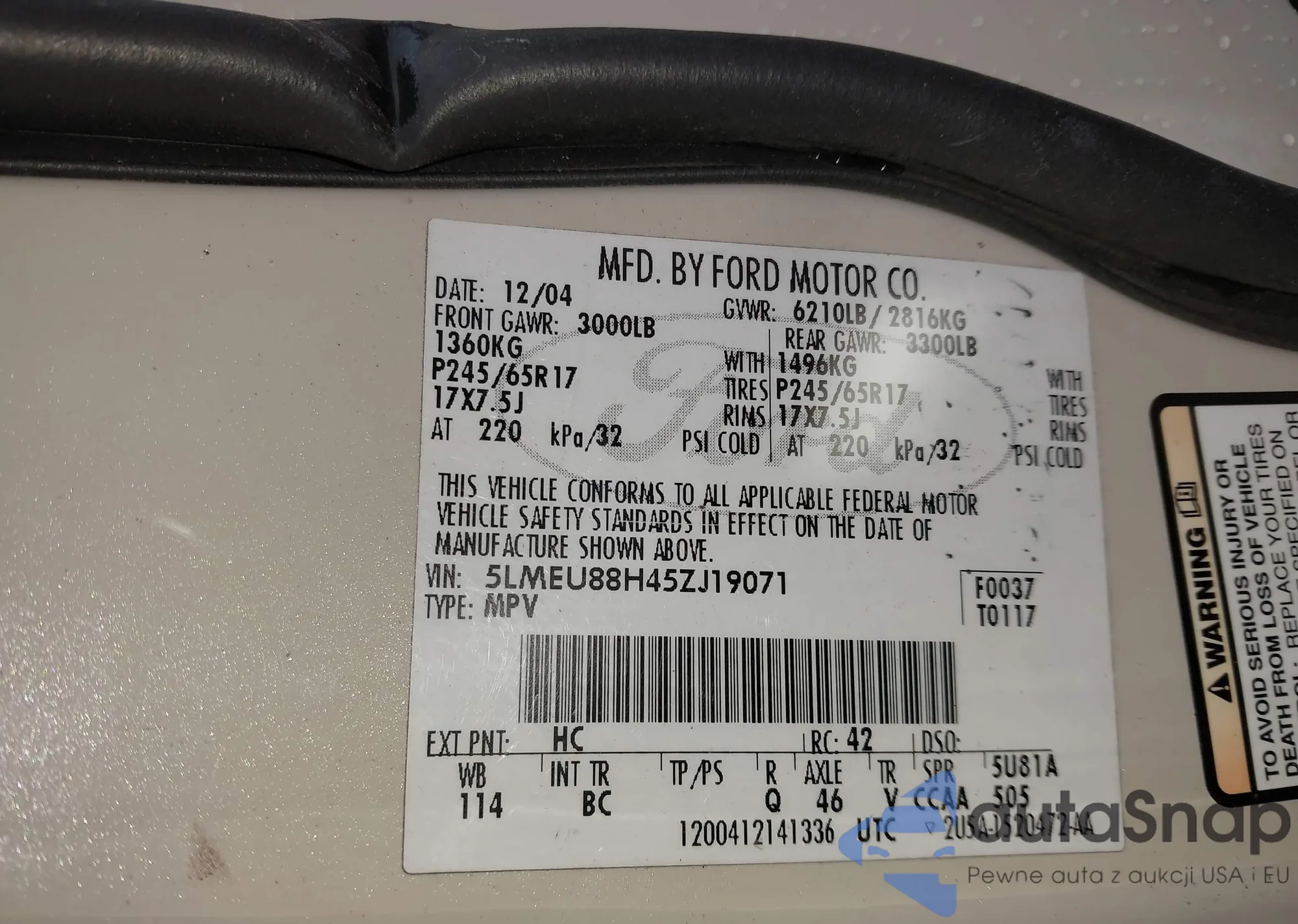 VIN: 5LMEU88H45ZJ19071