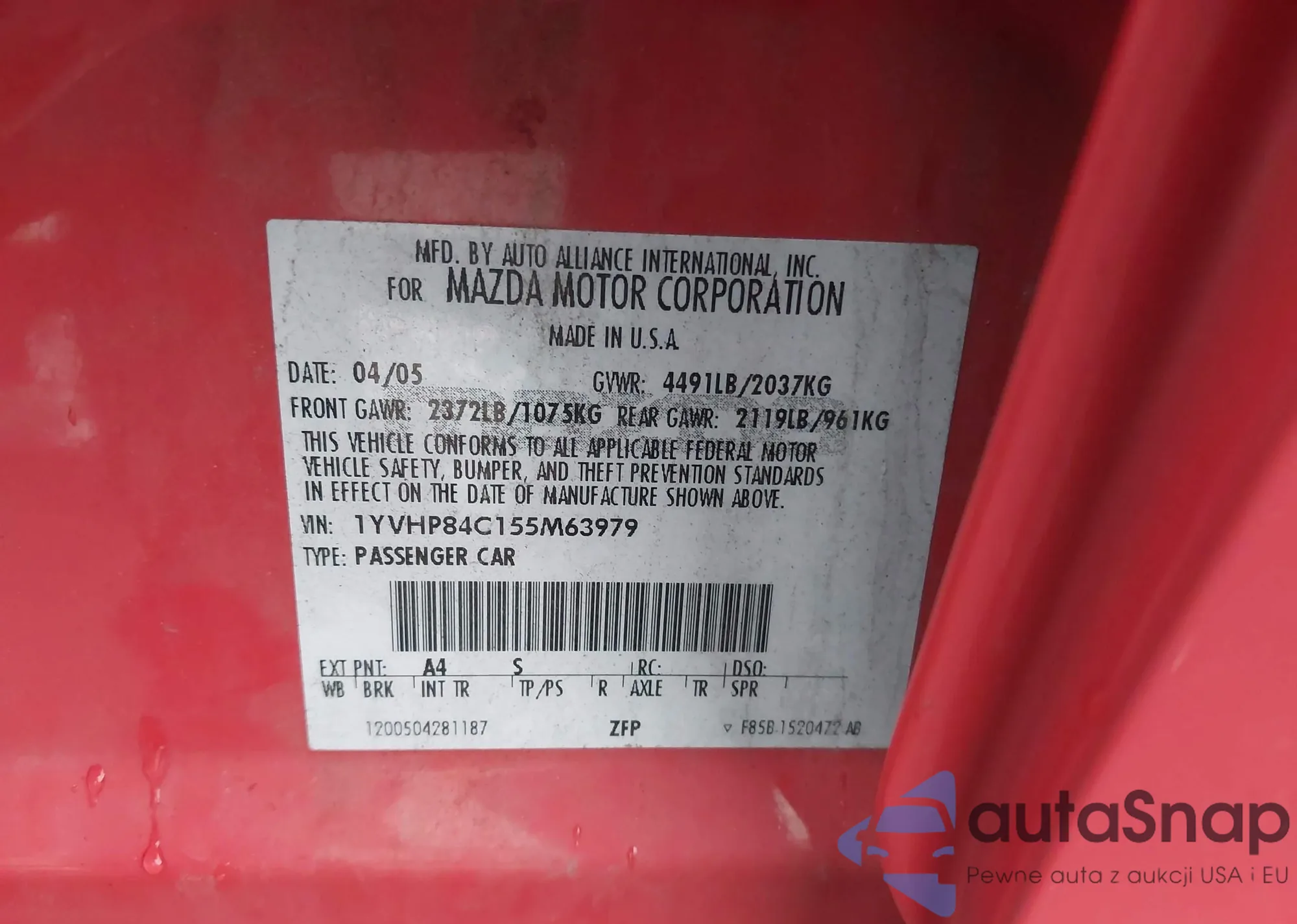 VIN: 1YVHP84C155M63979