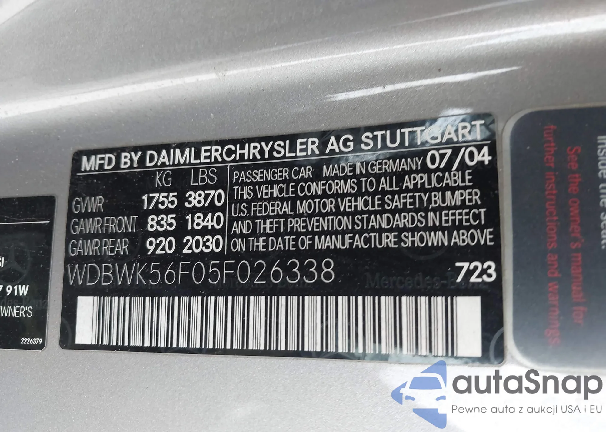 • VIN: WDBWK56F05F026338