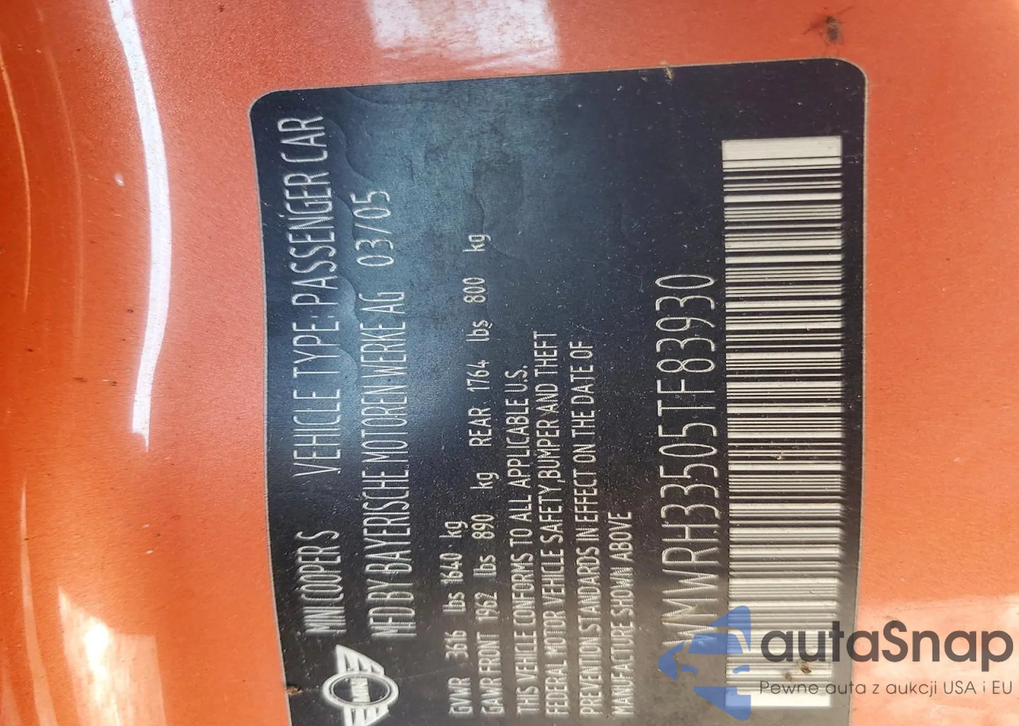 • VIN: WMWRH33505TF83930