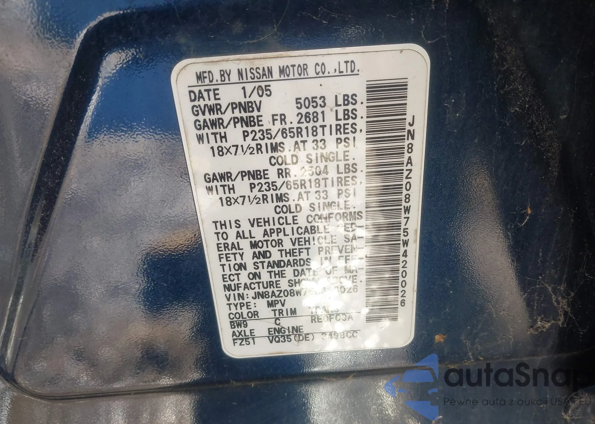 Nissan Murano 2005 – Historia pojazdu (sprzedany na IAAI)