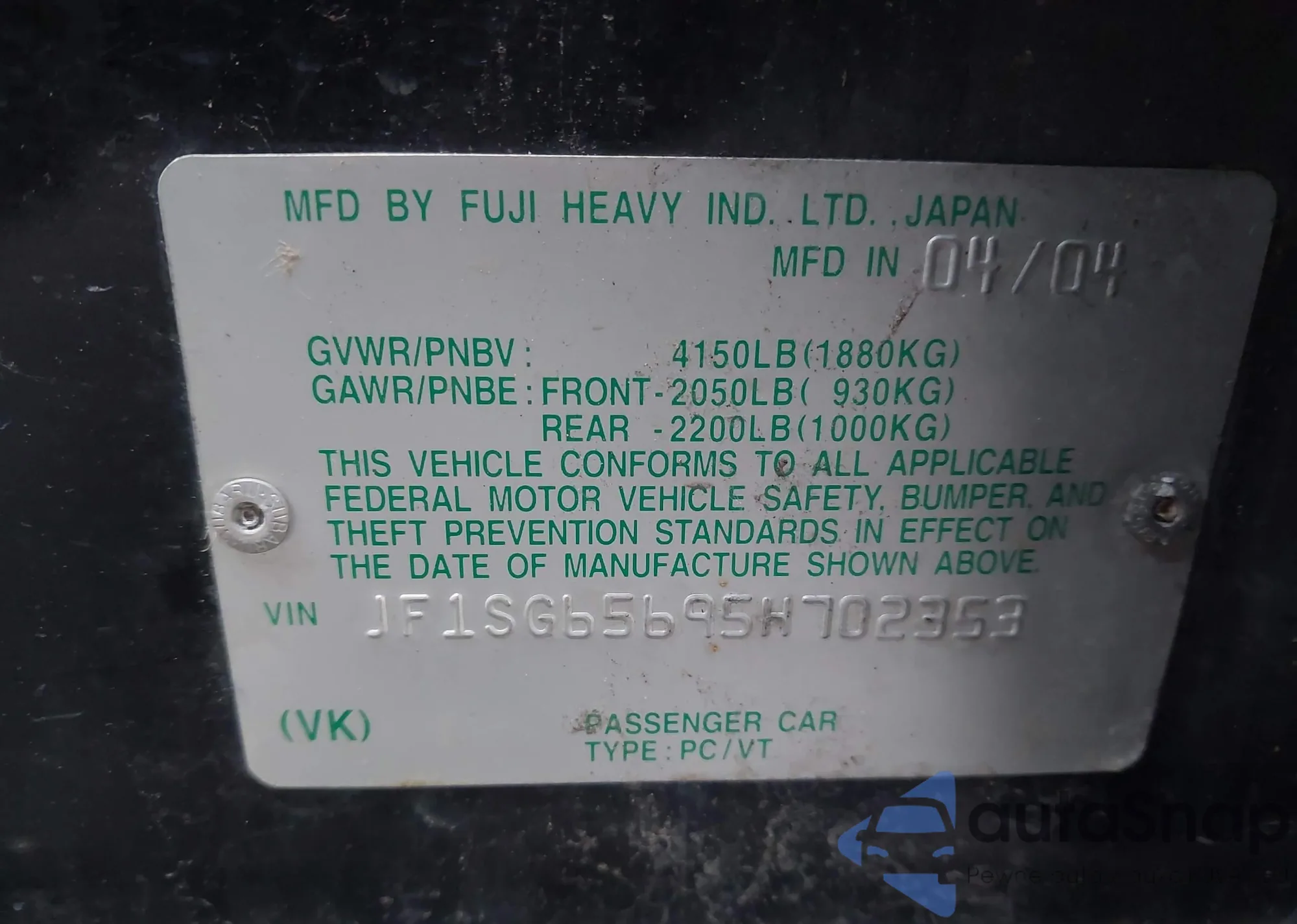 • VIN: JF1SG65695H702353