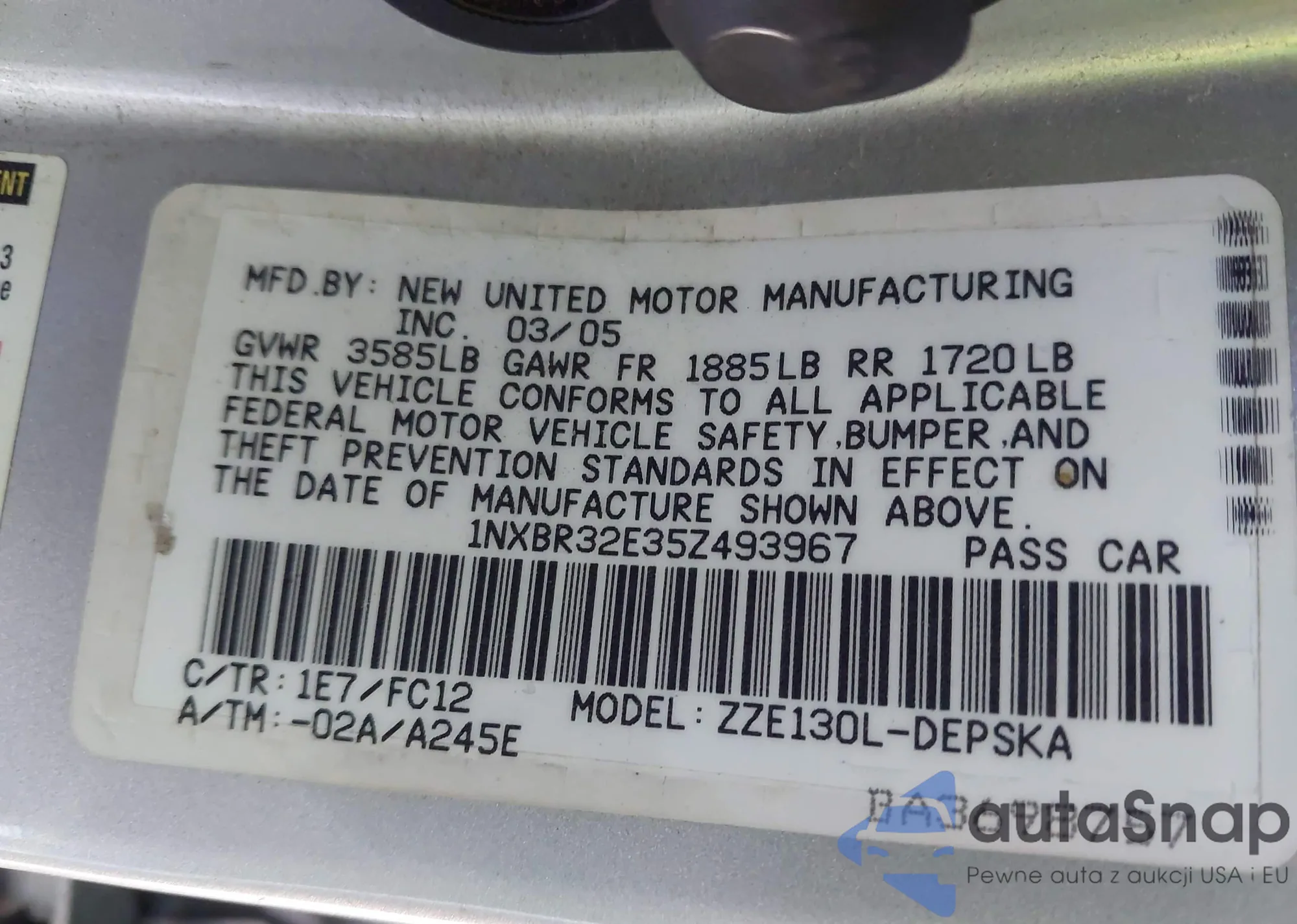 VIN: 1NXBR32E35Z493967
