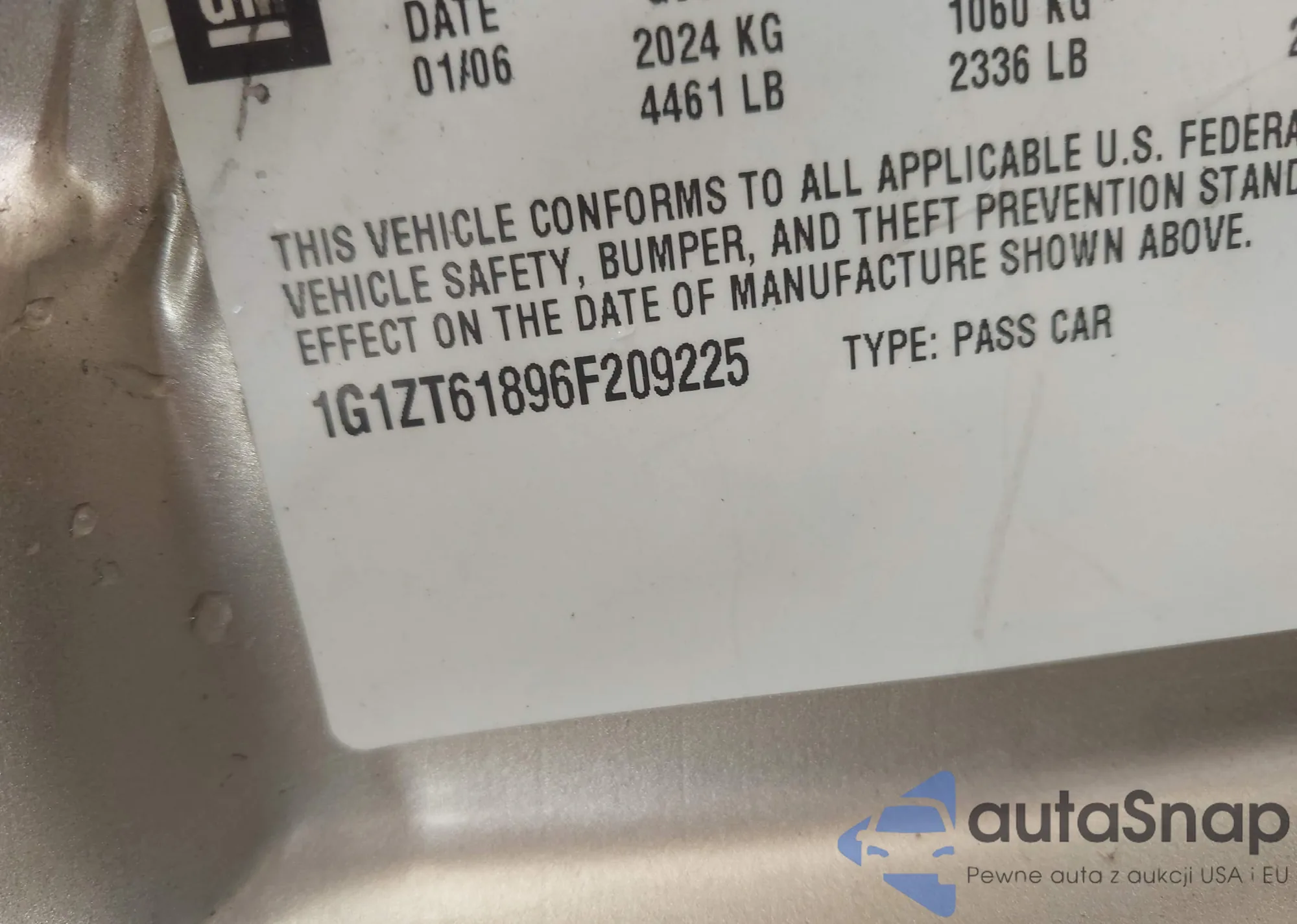 VIN: 1G1ZT61896F209225