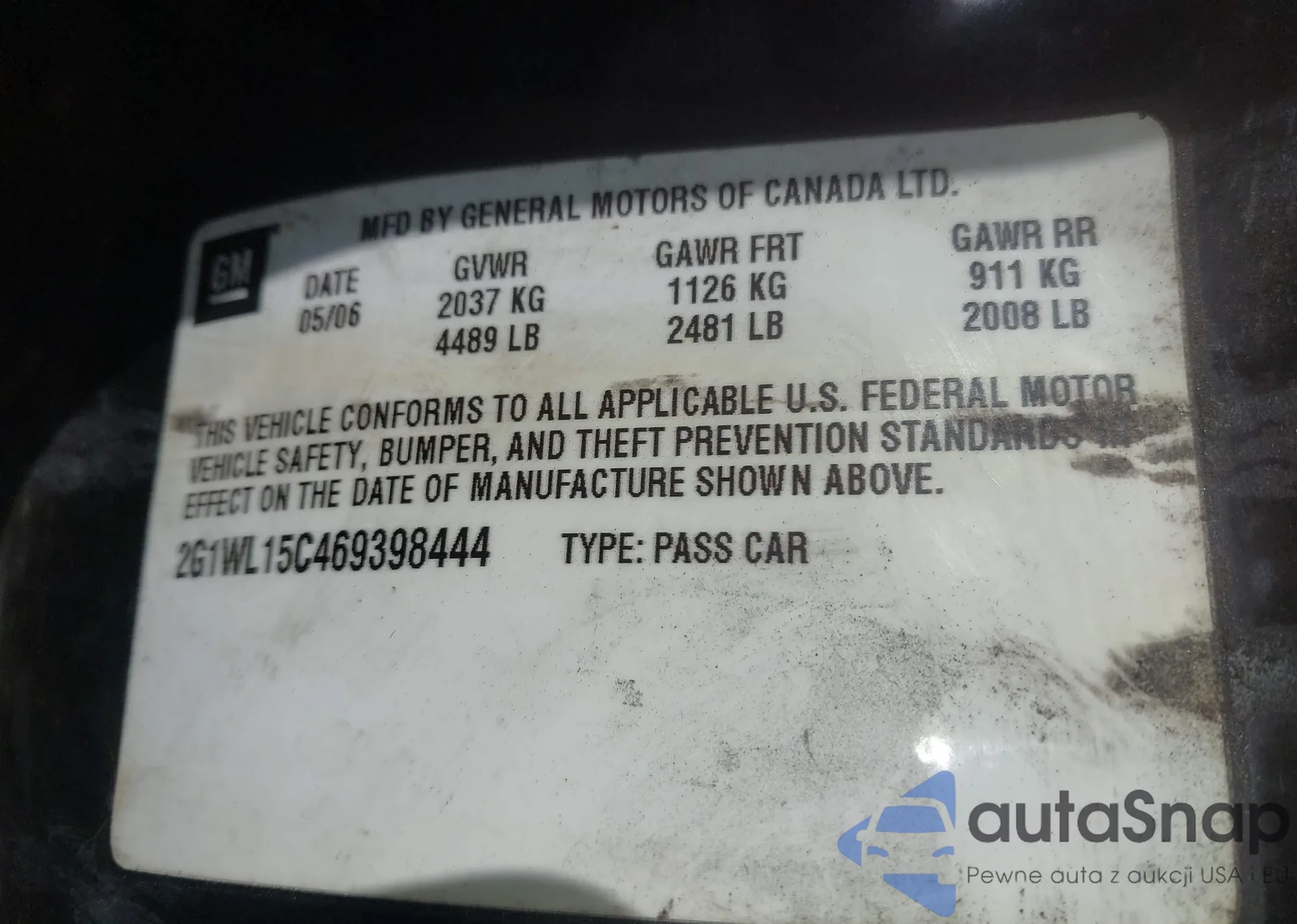 • VIN: 2G1WL15C469398444
