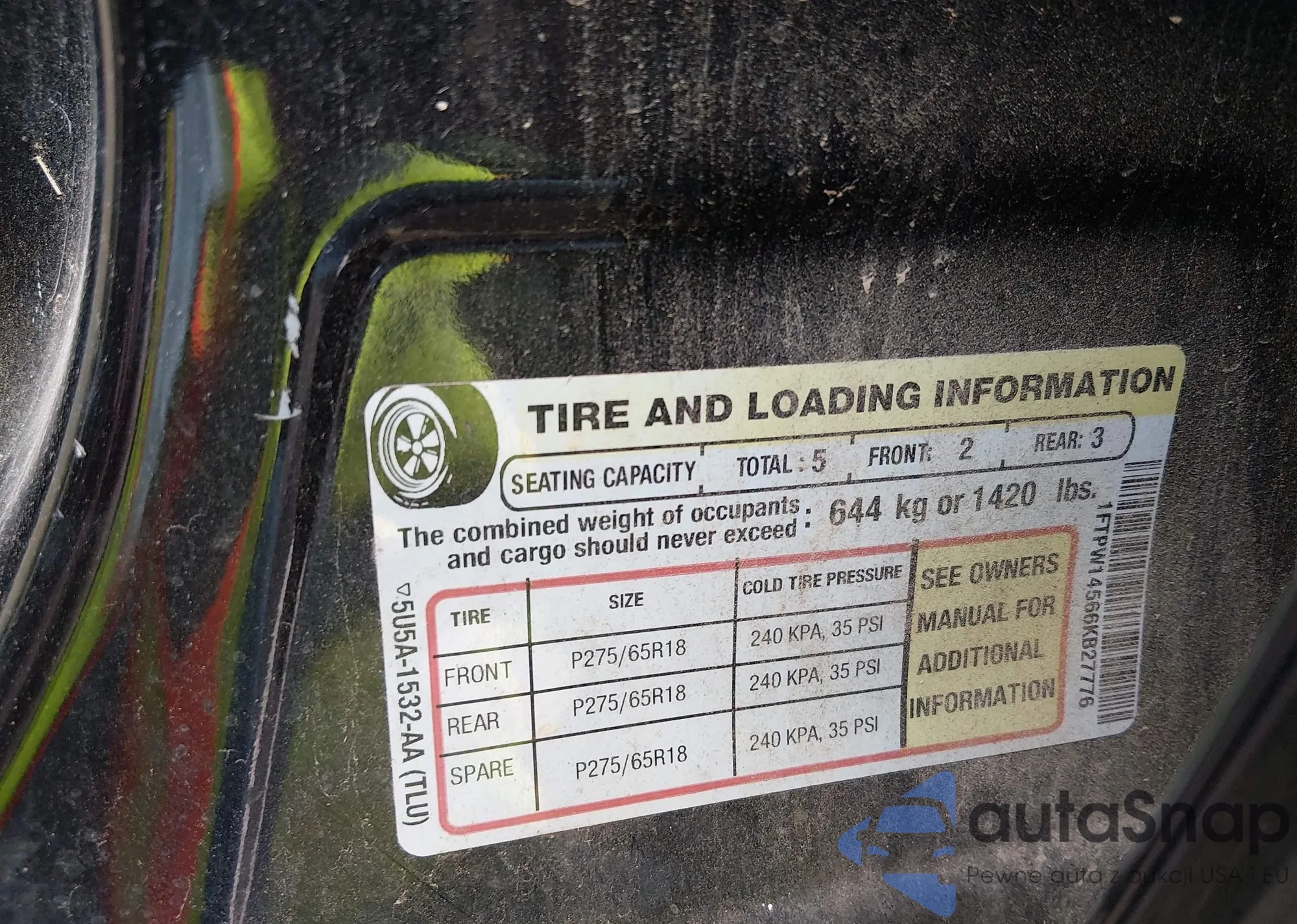 Samochód Ford F-150 2006 (VIN 1FTPW14566KB27776) nie był wcześniej licytowany. Dokumenty są czyste, przebieg odpowiada lub jest niższy niż średnia rynku. Sprzedaje go firma ubezpieczeniowa – polecamy zakup. Dostawa do portu zajmie ok. 6–8 tygodni.