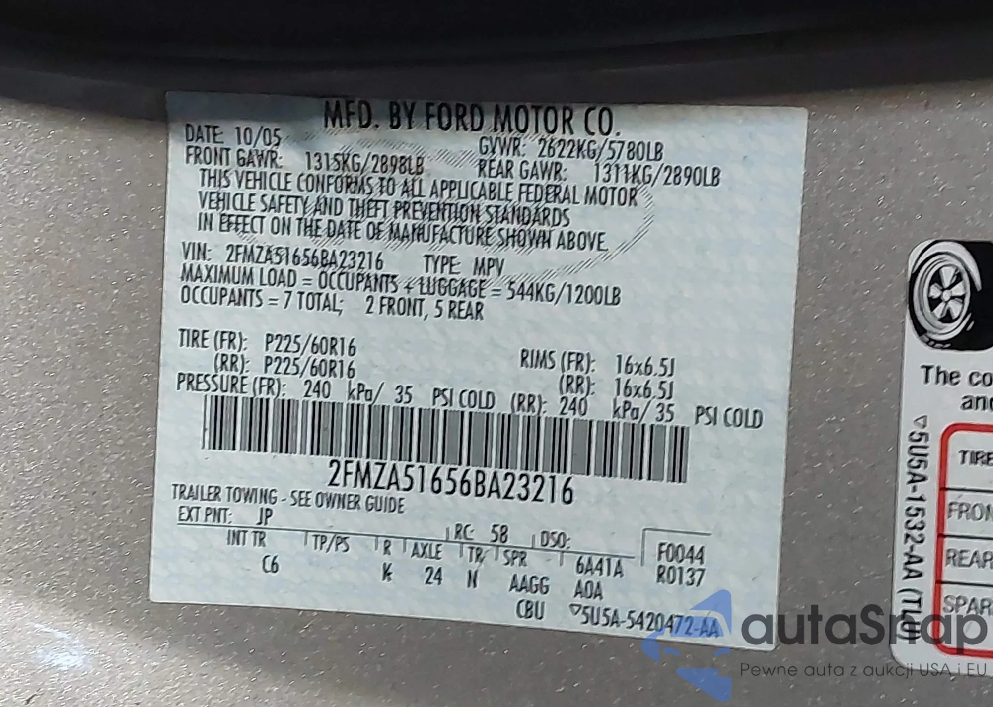 • VIN: 2FMZA51656BA23216