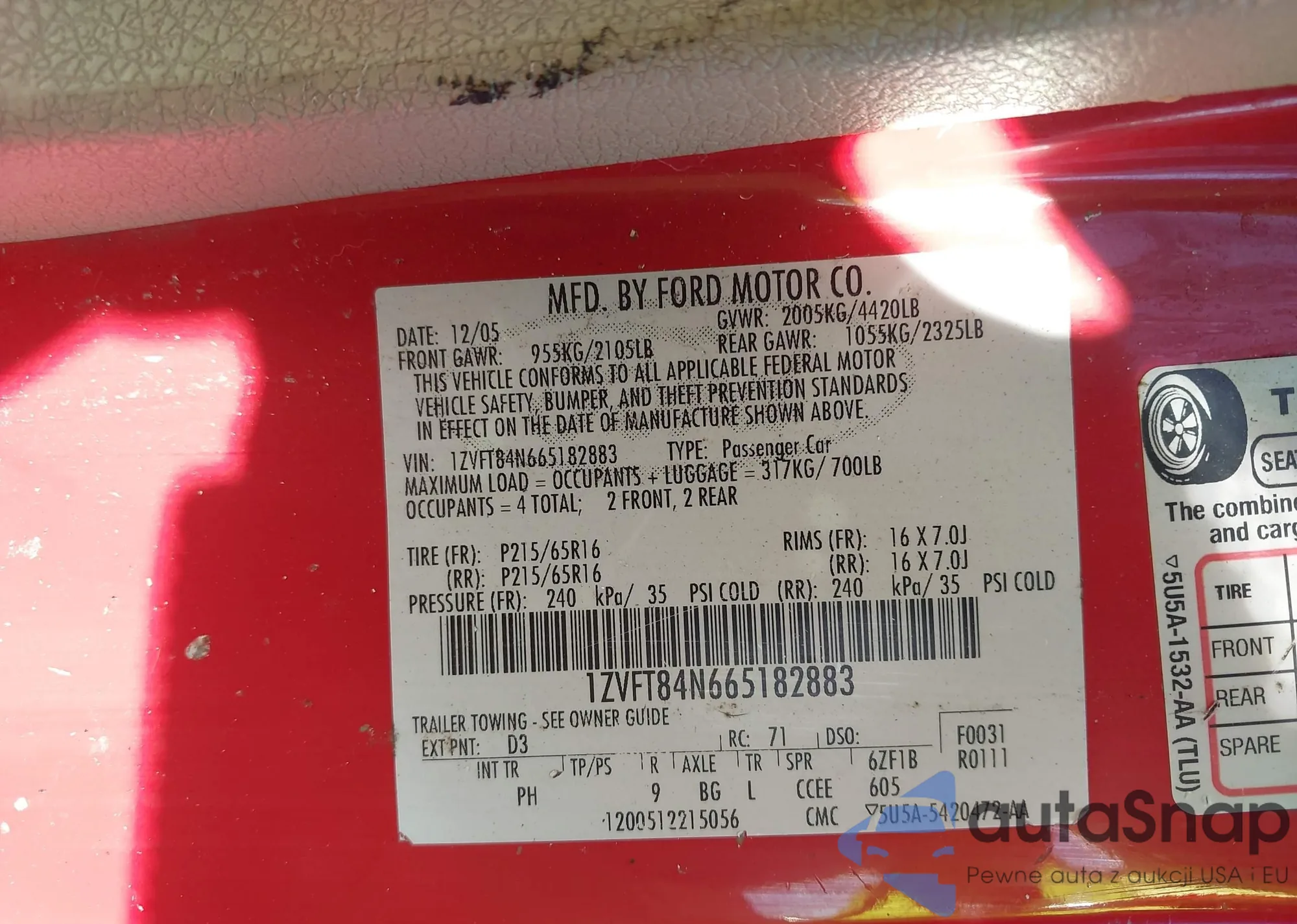 VIN: 1ZVFT84N665182883