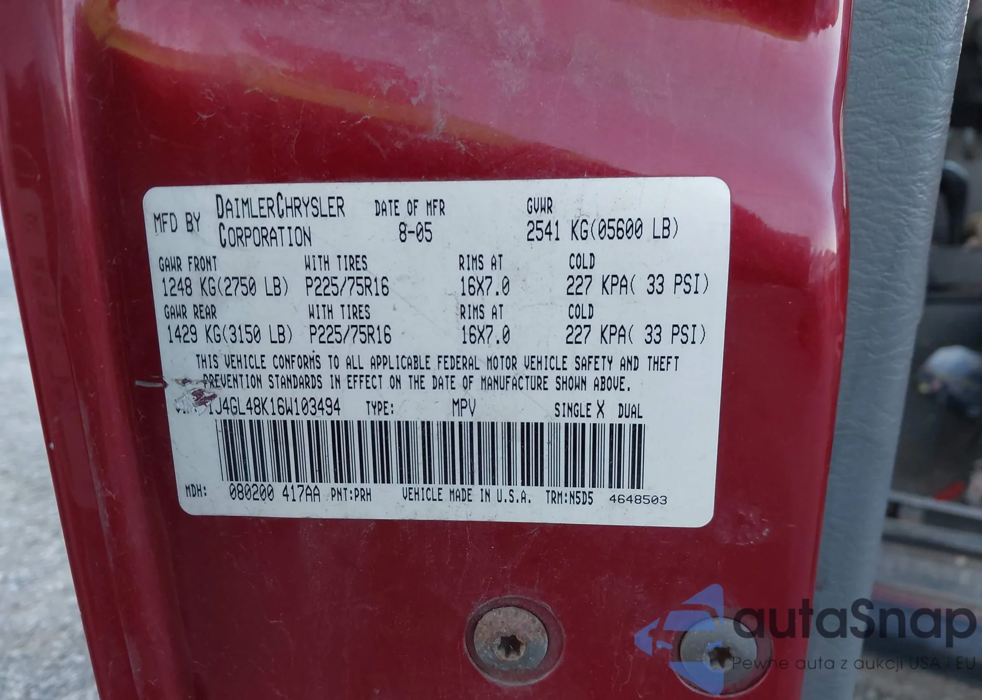 VIN: 1J4GL48K16W103494