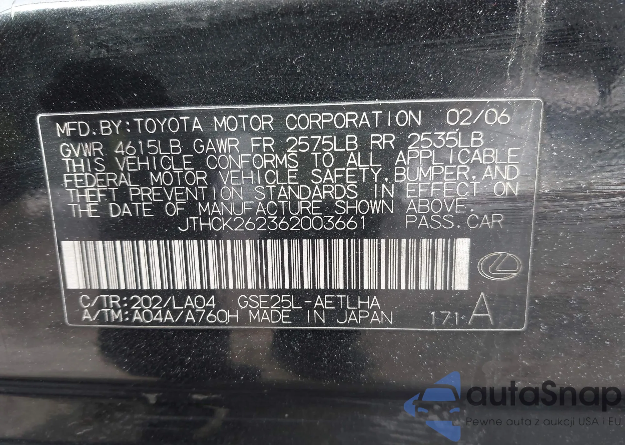 JTHCK262362003661 IAAI